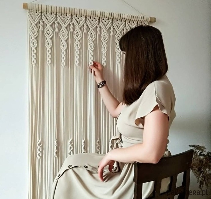 Niepowtarzalna makrama. Wykonana ze sznurka plecionego o grubości 5 mm.