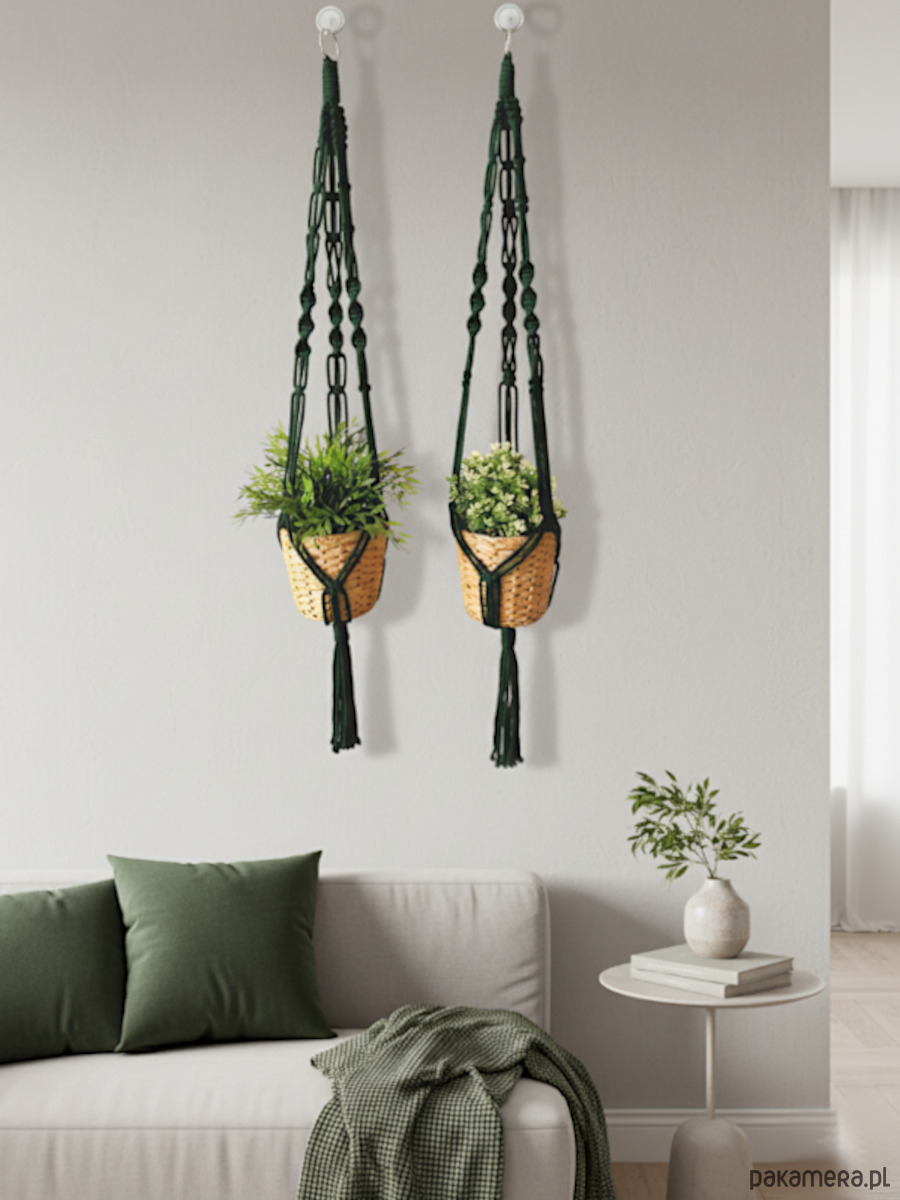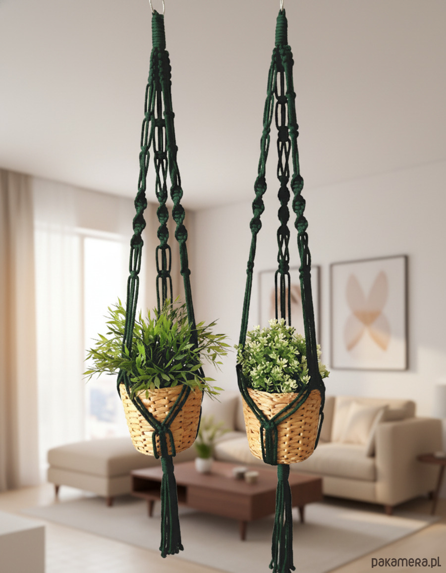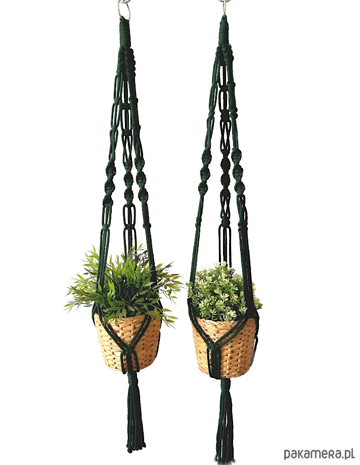 Kwietniki makrama 2 szt. butelkowa zieleń