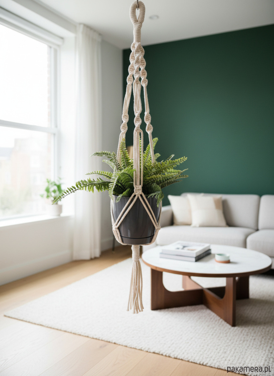 Nie ważne, czy Twoje mieszkanie emanuje nowoczesnym stylem czy rustykalnym urokiem – nasz makrama kwietnik wiszący w kolorze ecru z łatwością się dopasuje.