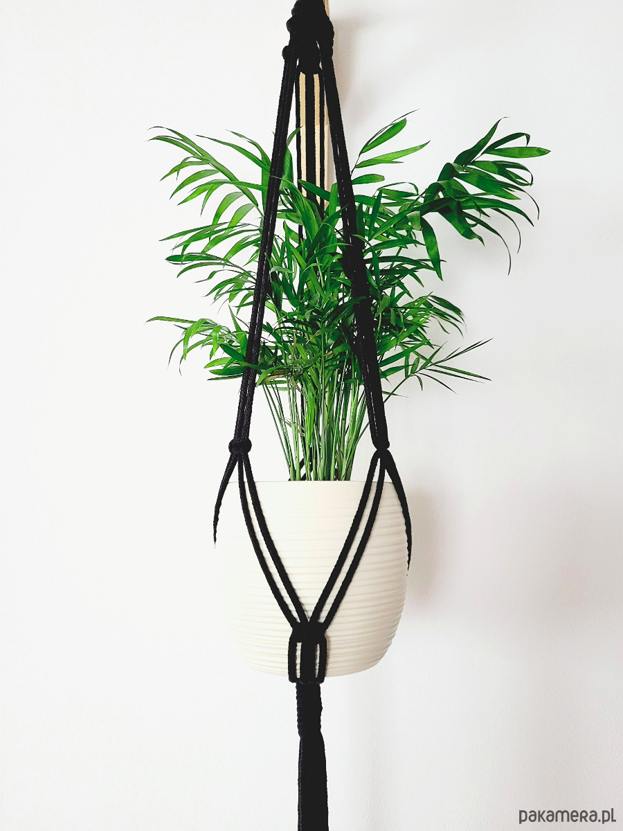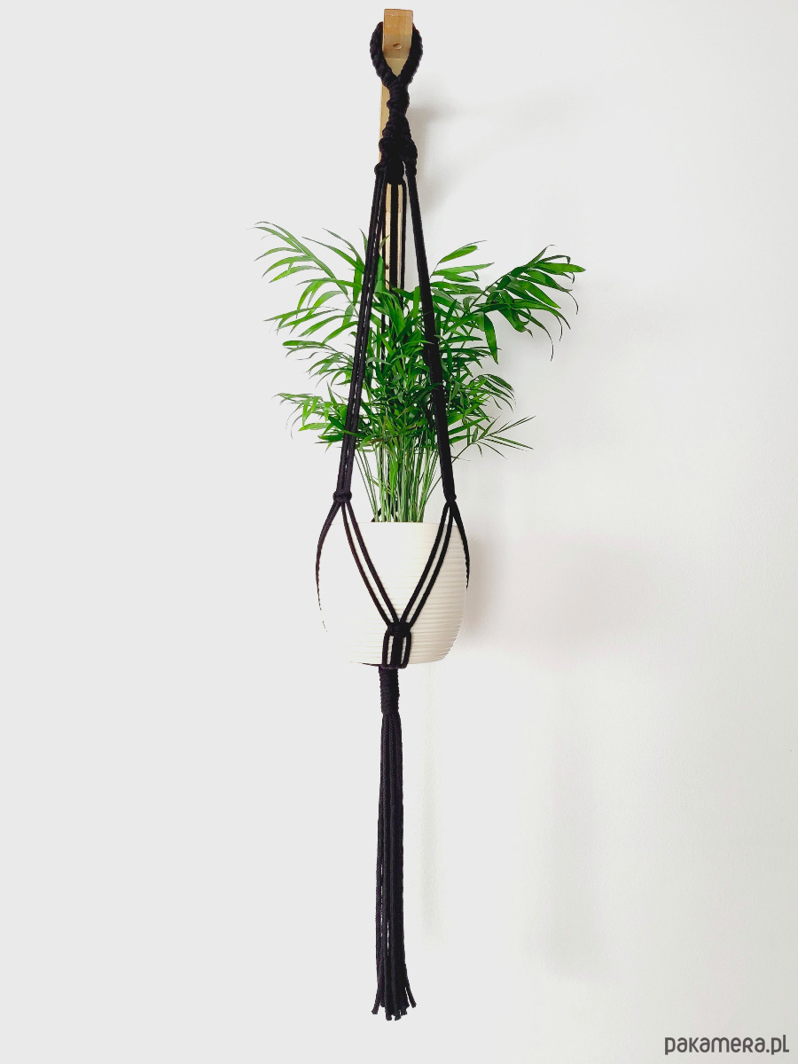 Makrama - czarny, mocny kwietnik wiszący, pleciony ze sznurka