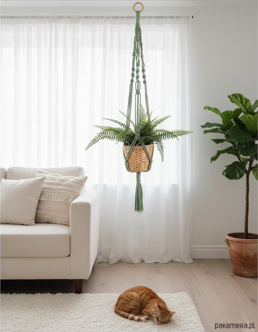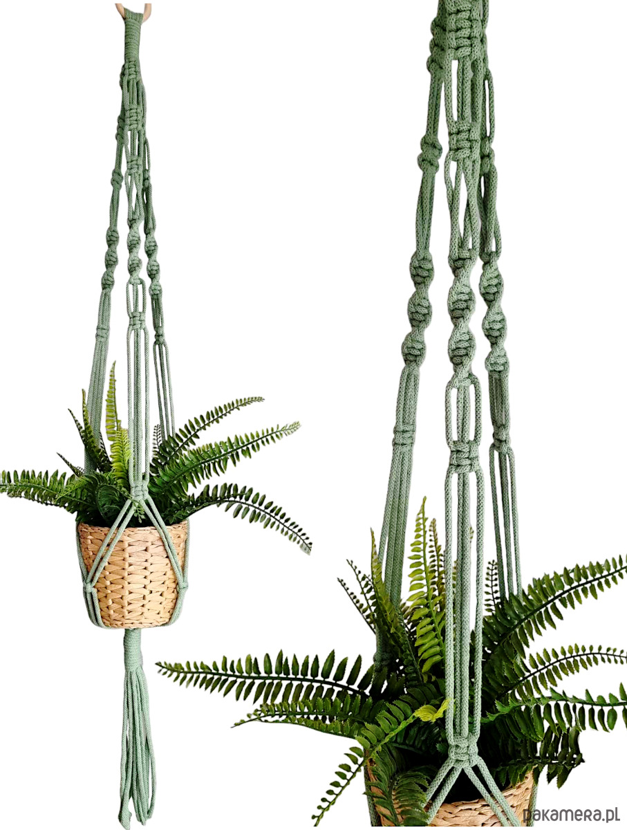 Odkryj nasz uroczy kwietnik makrama wykonany ze sznurka w odcieniu szałwii. Ta wyjątkowa ozdoba doskonale sprawdzi się jako dekoracja w każdym domu, pokoju nastolatki lub dziecka, biurze czy przydomowej altanie – gdziekolwiek potrzebujesz odrobiny uroku i świeżości. Kwietnik nie tylko doda charakteru Twojemu wnętrzu, ale także sprawi, że będzie ono bardziej przytulne i pełne życia. Doskonale komponuje się z ozdobną doniczką, tworząc wyjątkową aranżację roślinną, która zachwyci każdego. Odpocznij w otoczeniu pięknych roślin z naszym kwietnikiem makrama i poczuj, jak wnętrze Twojego domu nabiera ciepła i harmonii.