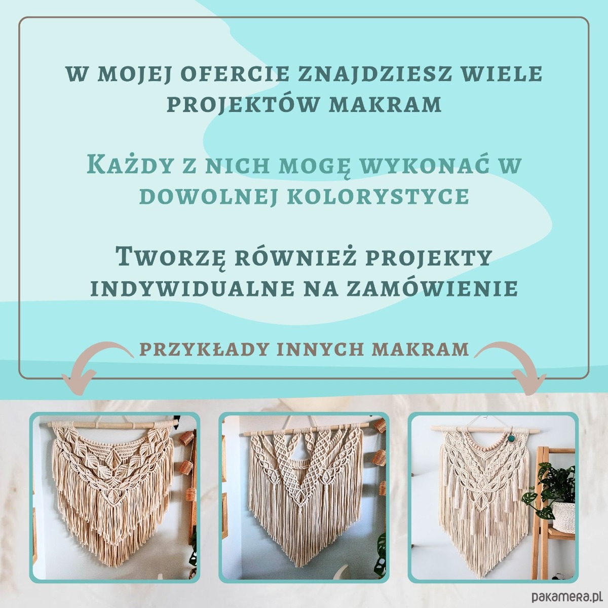 Makramy są idealnym dodatkiem do wnętrz naszych domów czy aranżacji zewnętrznych takich jak taras, balkon czy weranda na działce. Nadają wnętrzom ciepła i stylu, wpasowując się zarówno w typowy styl boho, ale również skandynawski, marynistyczny, hampton czy shabby chic. Są również idealnym pomysłem na prezent dla bliskiej osoby😊