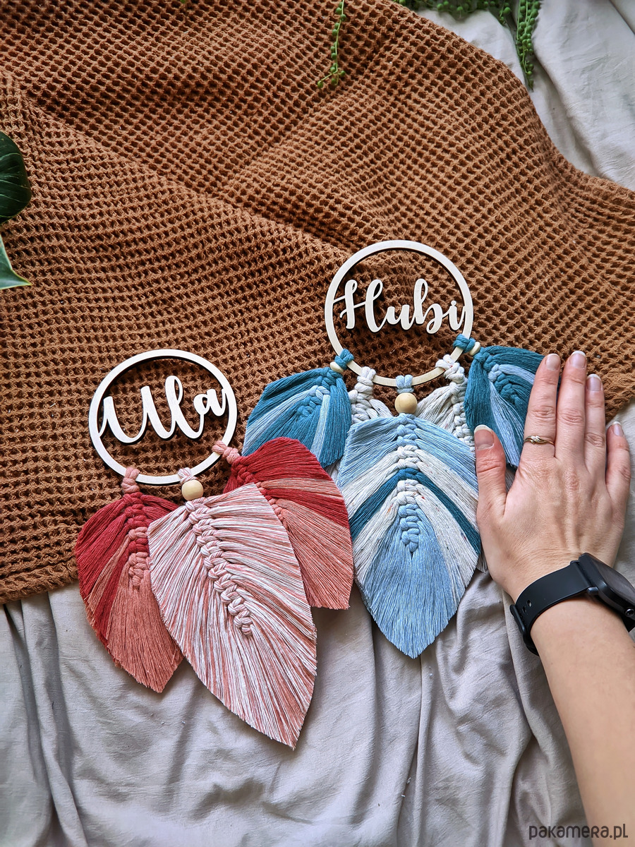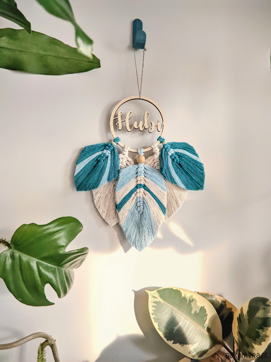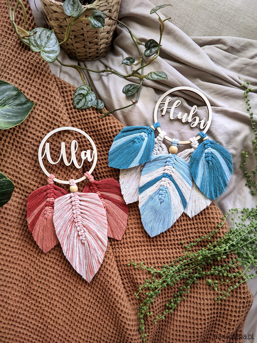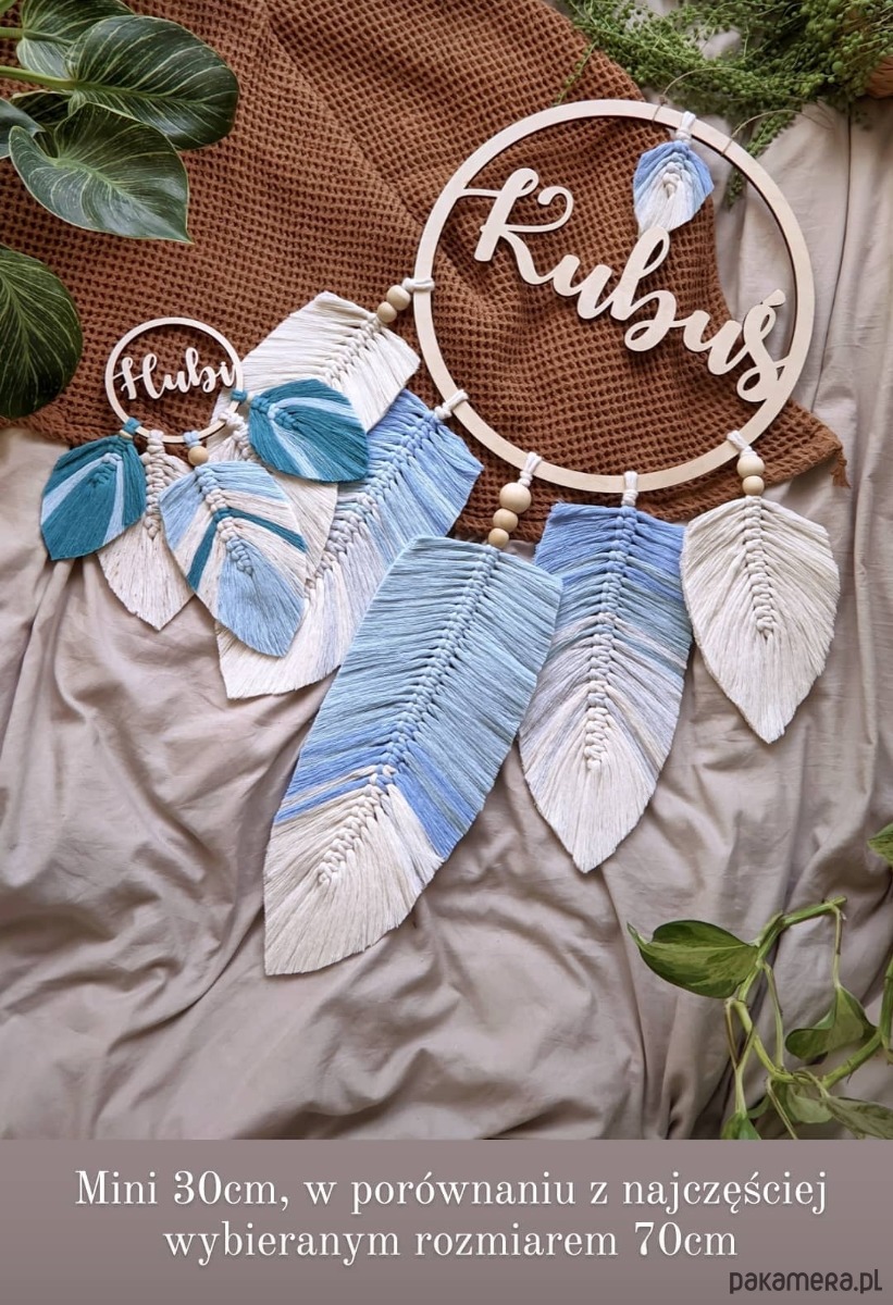 Makrama Łapacz Snów z imieniem 26cm Niebieski, prezent dla chłopca