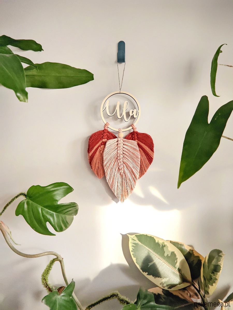Makrama Łapacz Snów z napisem 26cm Różowy