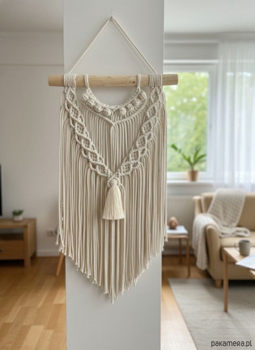 Niepowtarzalna makrama. Wykonana ze sznurka plecionego o grubości 5 mm.