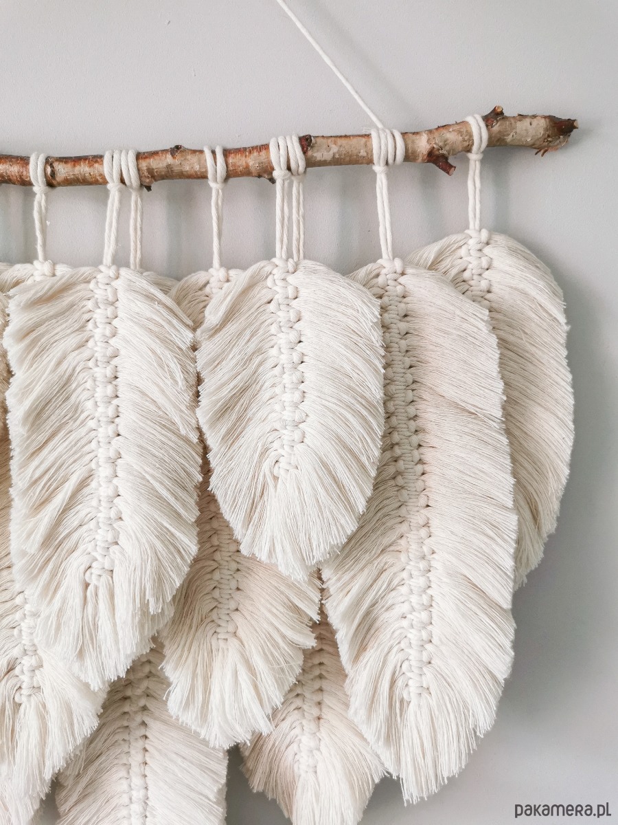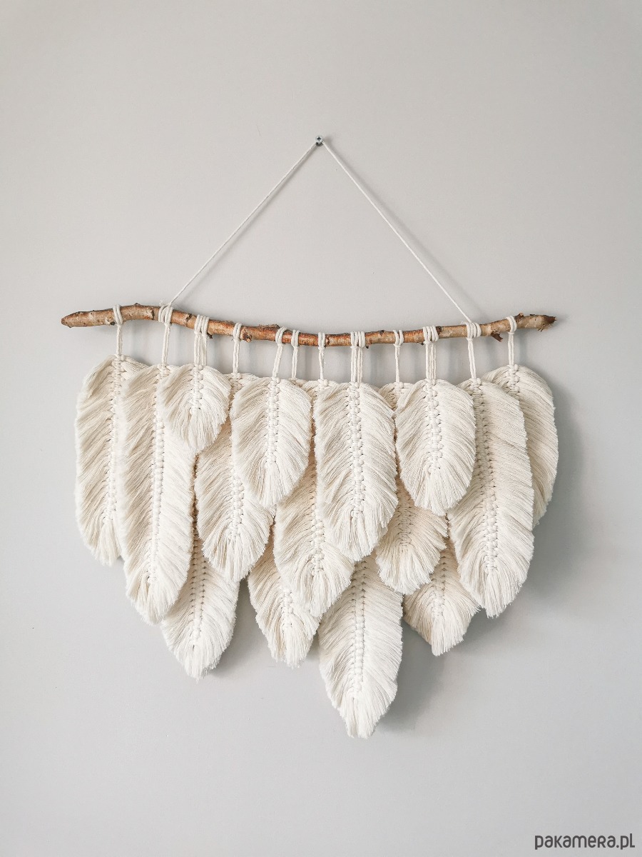 Makrama została wykonana ze sznurka bawełnianego, na kiju brzozowym.