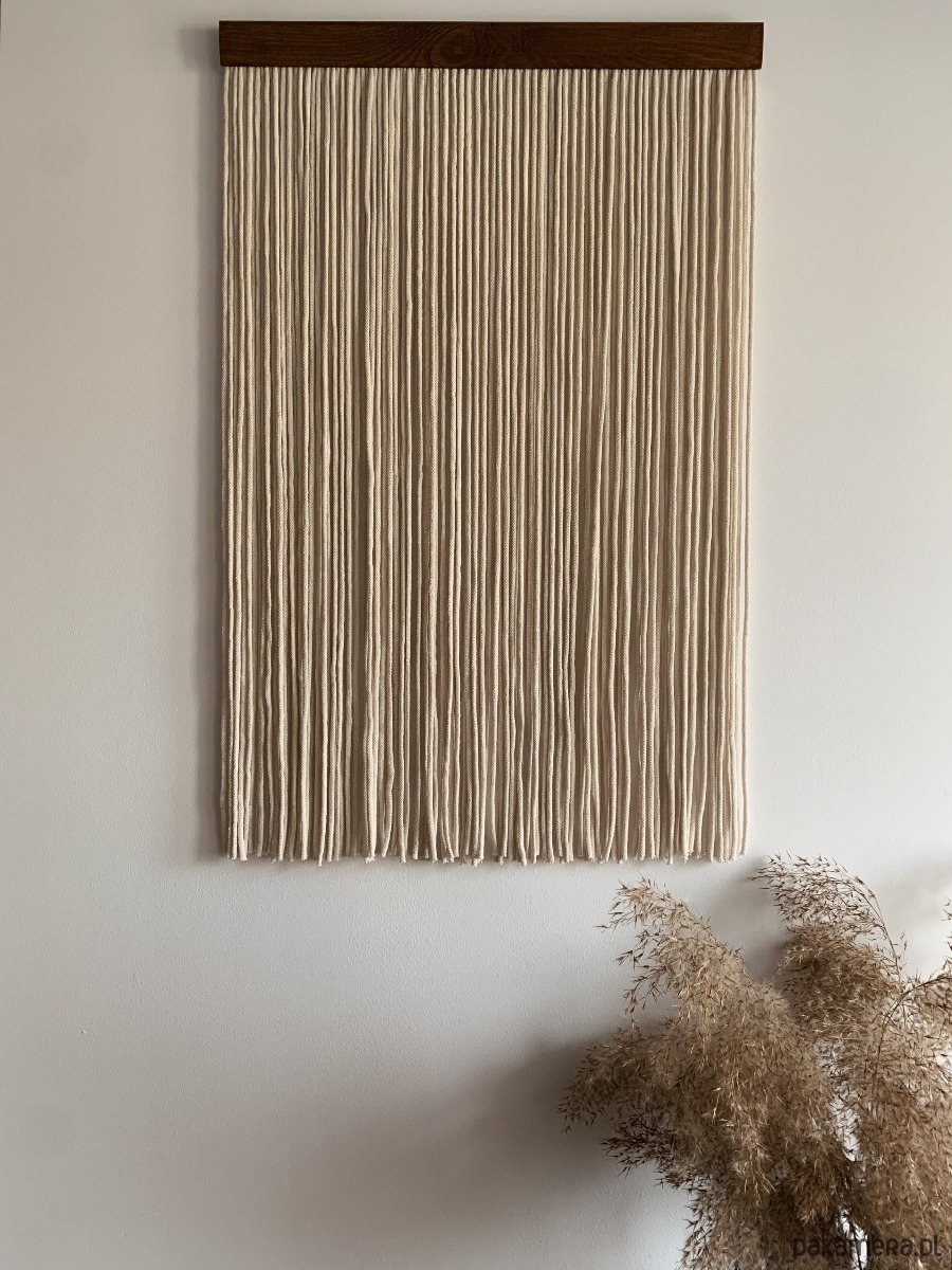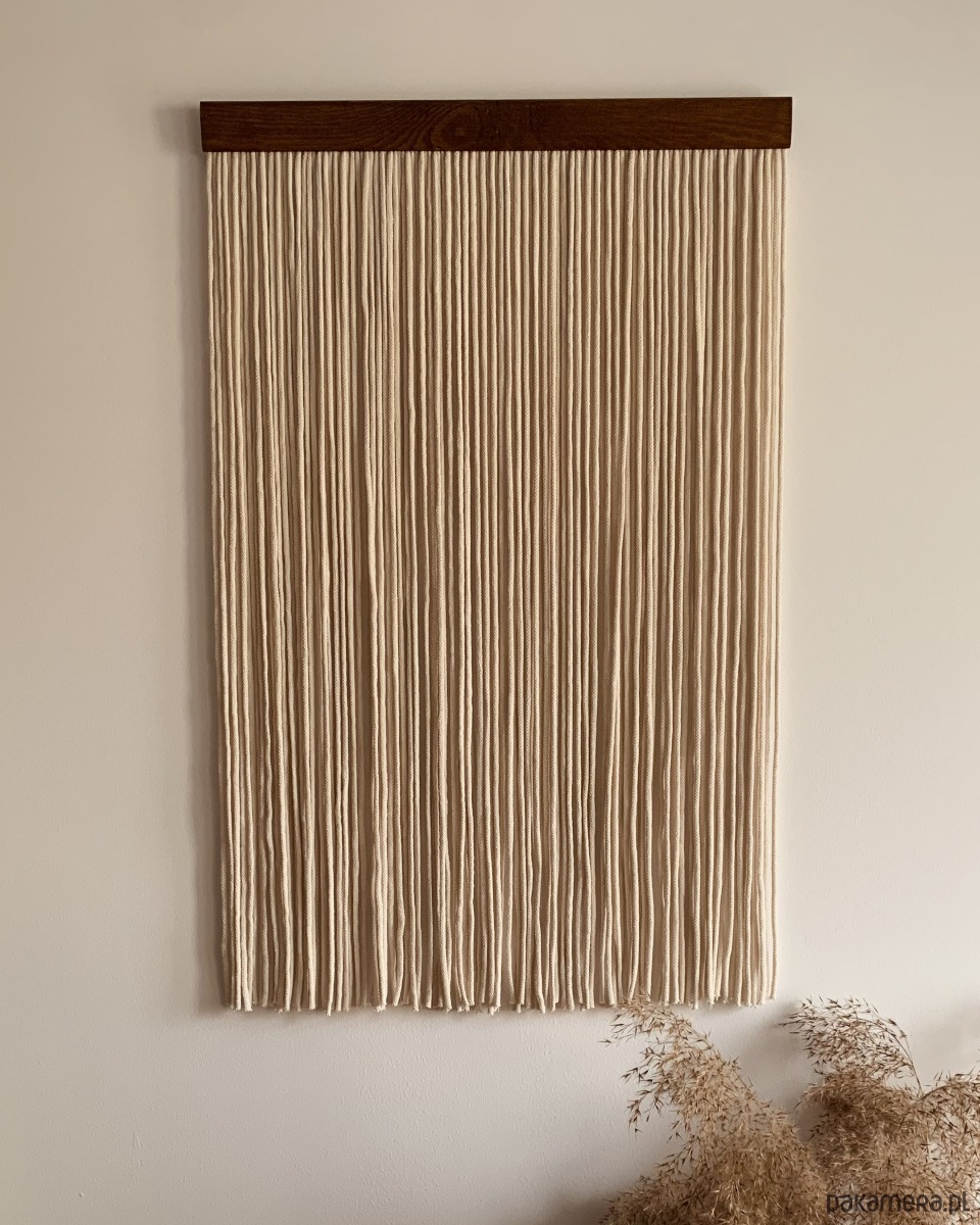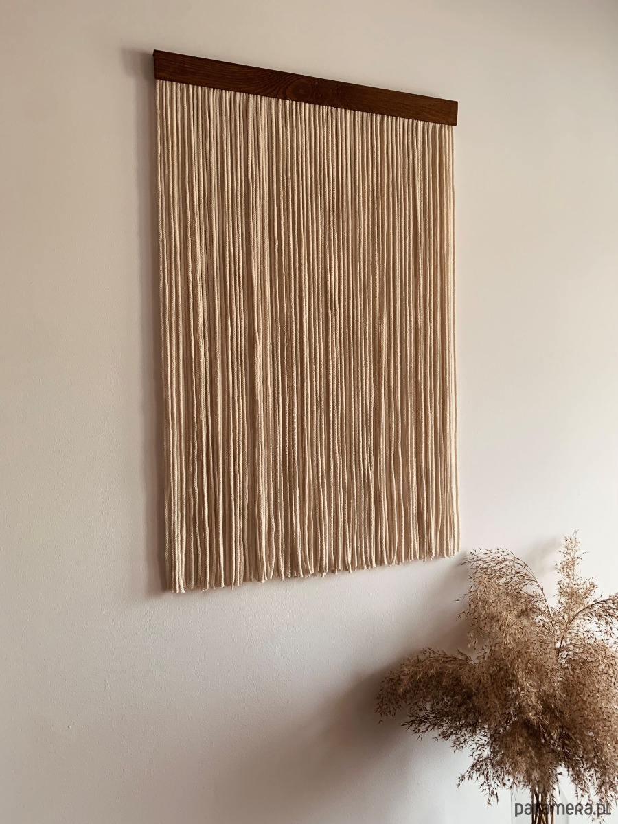 Makrama Nowoczesna Beżowa to elegancka dekoracja, która wprowadzi harmonię i minimalizm do Twojego wnętrza.
