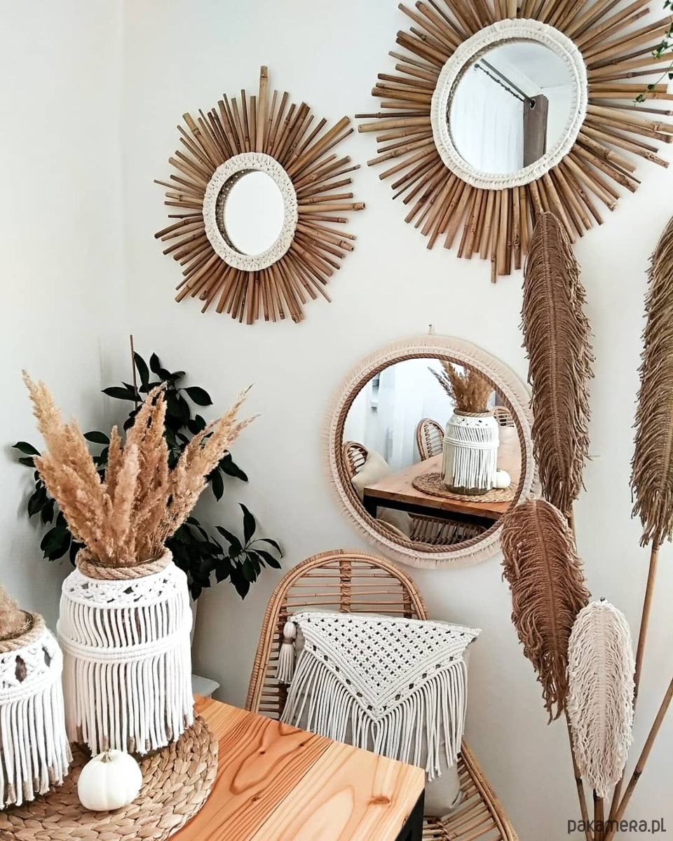 Niepowtarzalna dekoracja do wazonu. Wykonana ze sznurka jutowego umieszczona na tyczce z naturalnego bambusa.