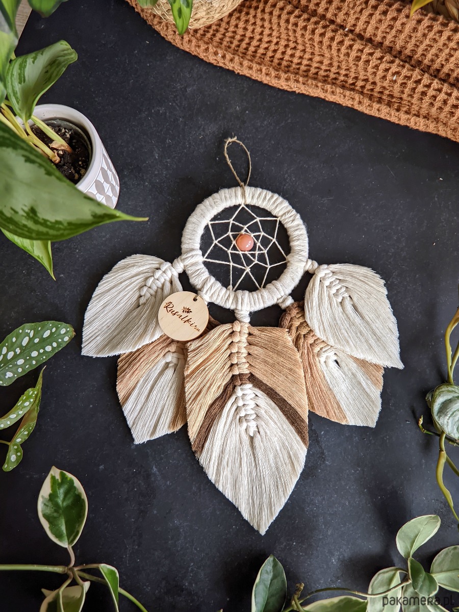 Łapacz snów, ręcznie pleciony z bawełnianego sznurka.