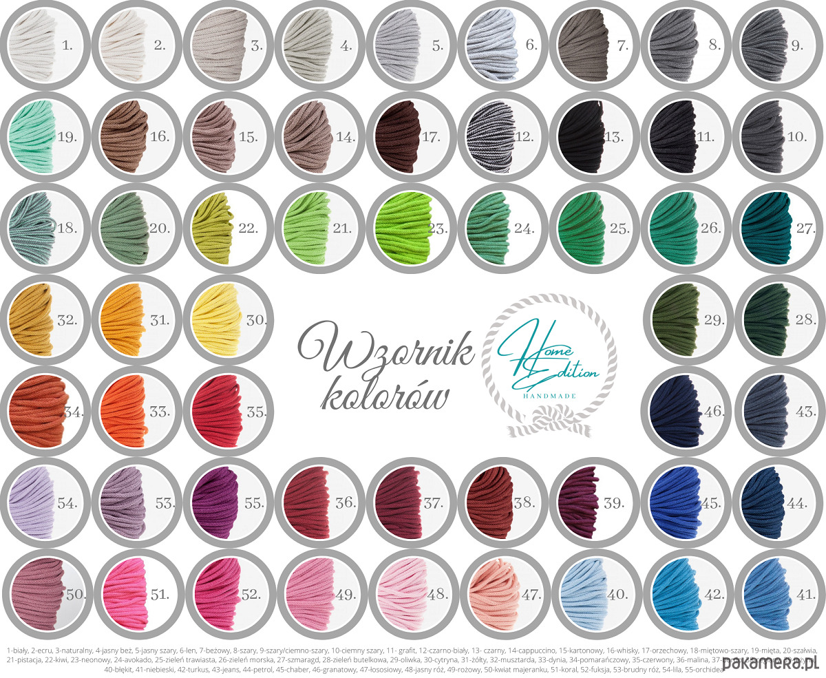 Oczywiście możliwe jest wykonanie makramy w dowolnym kolorze z dostępnego wzornika kolorów (ostatnie zdjęcie w galerii produktu). Kolor danego sznurka może nieznacznie odbiegać od tego na zdjęciu- spowodowane jest to różną kalibracją naszych monitorów, ale również delikatnymi różnicami w odcieniach w poszczególnych zamawianych partiach sznurków.
