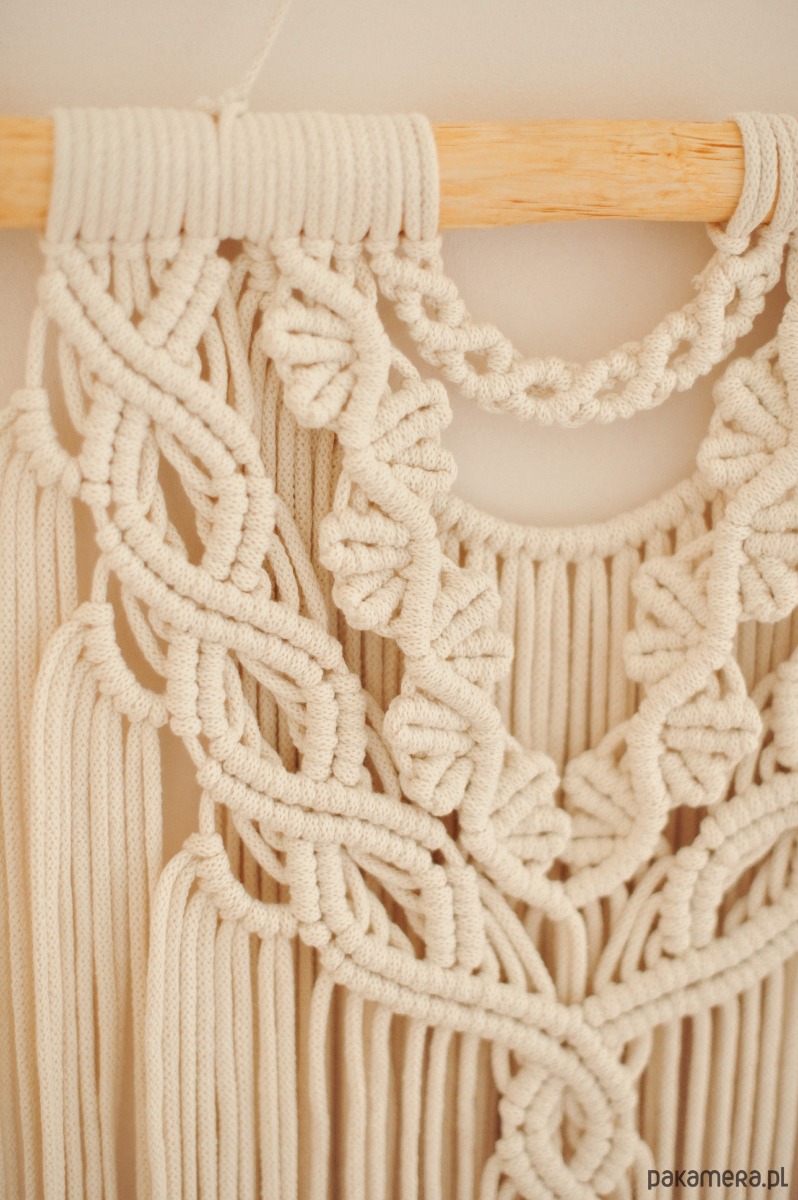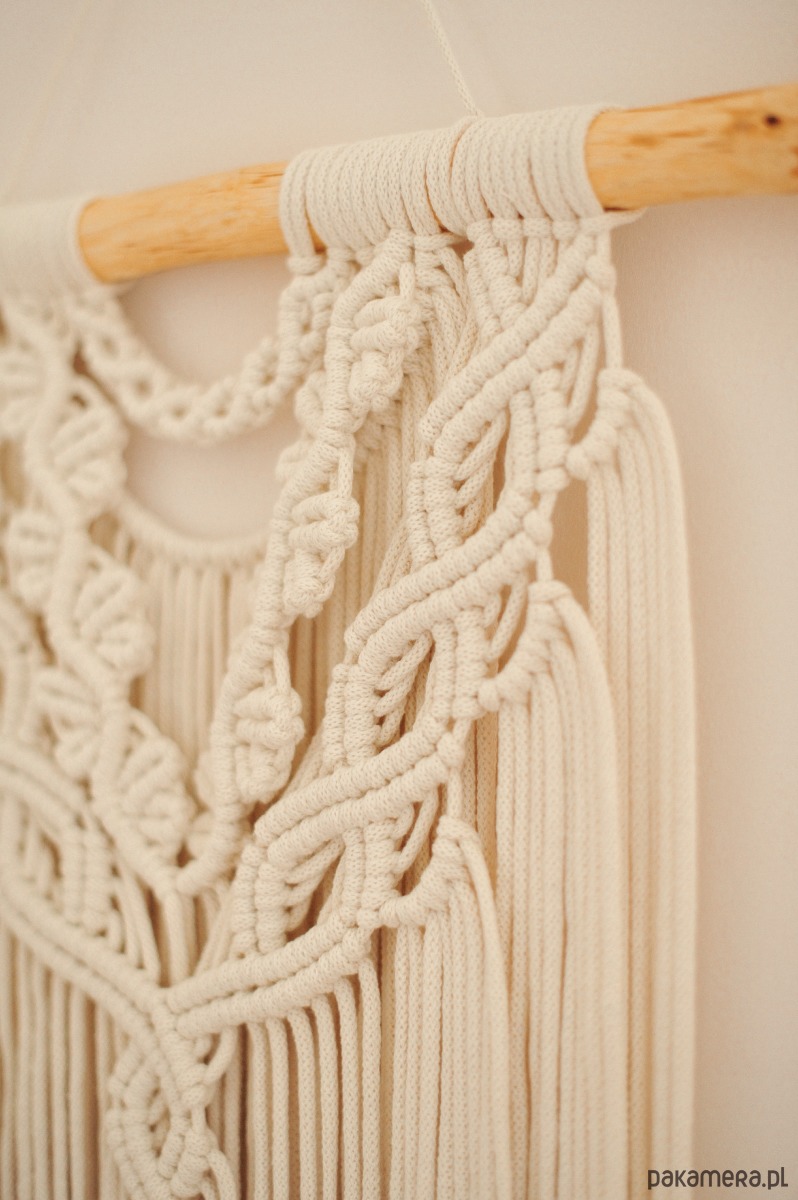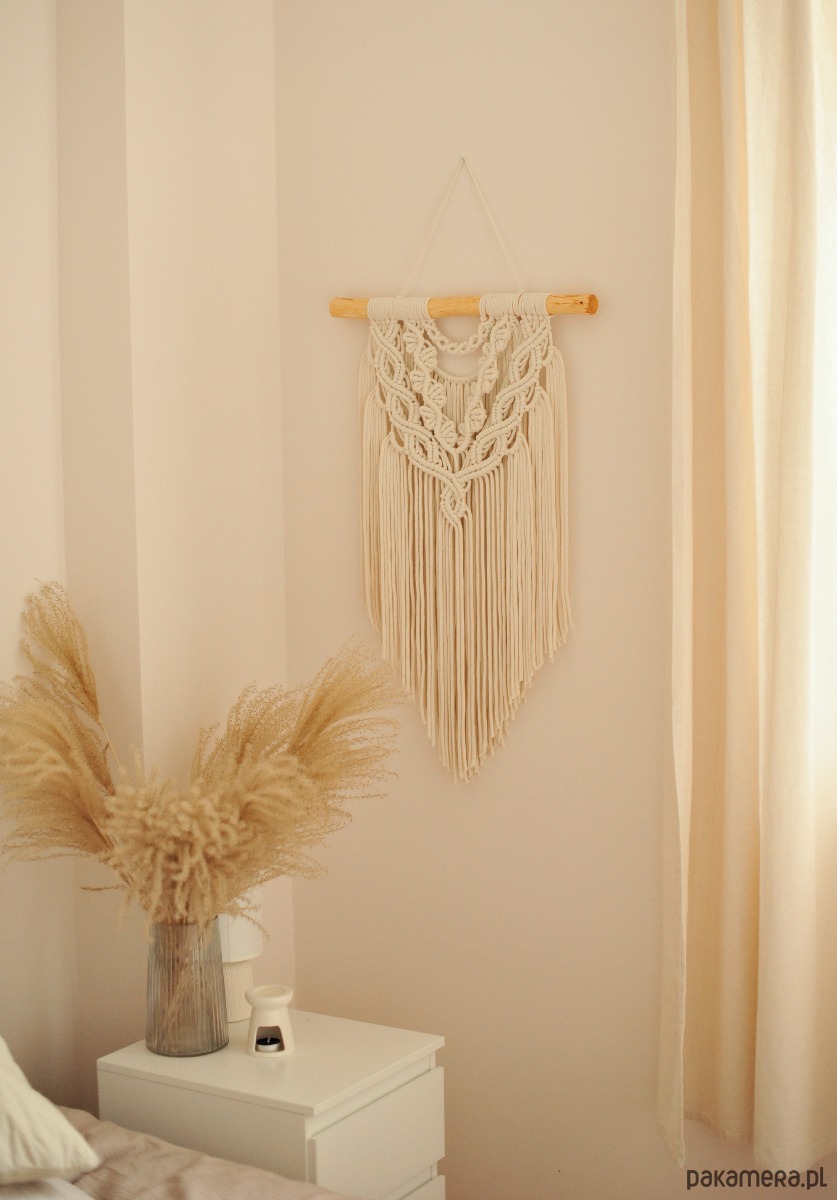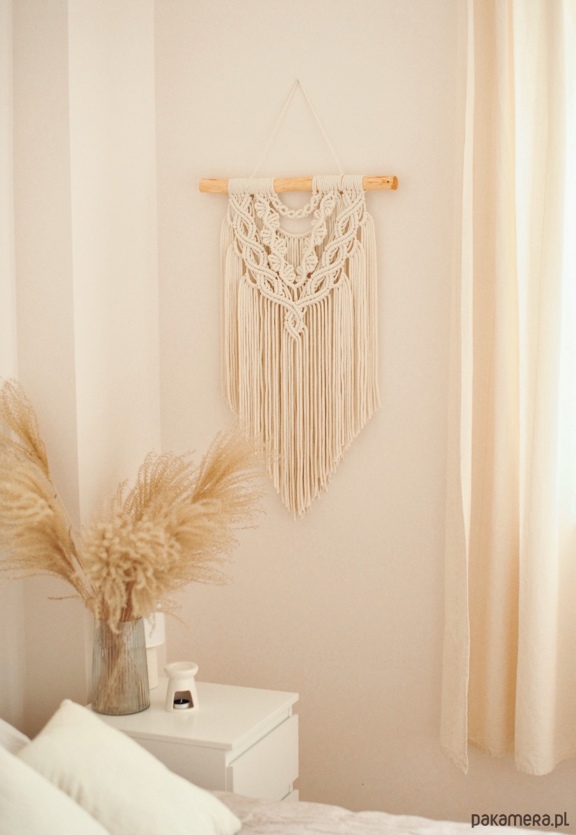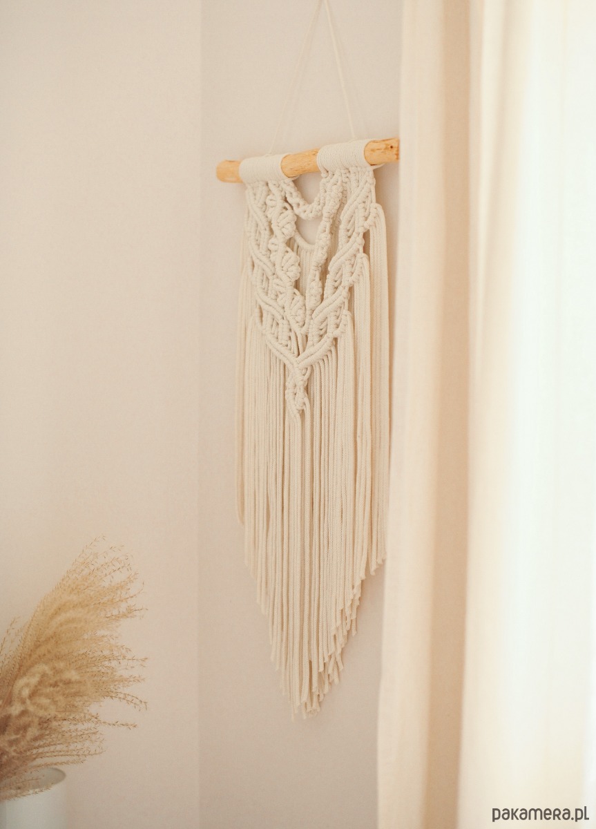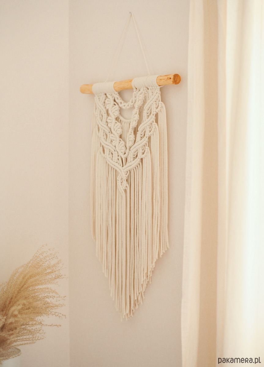 Ręcznie wypleciona makrama z naturalnego bawełnianego sznurka 5 mm z najwyższą starannością i precyzją. W każdy projekt wkładam całe serduszko i zaangażowanie. Świetnie ociepli każde wnętrze.