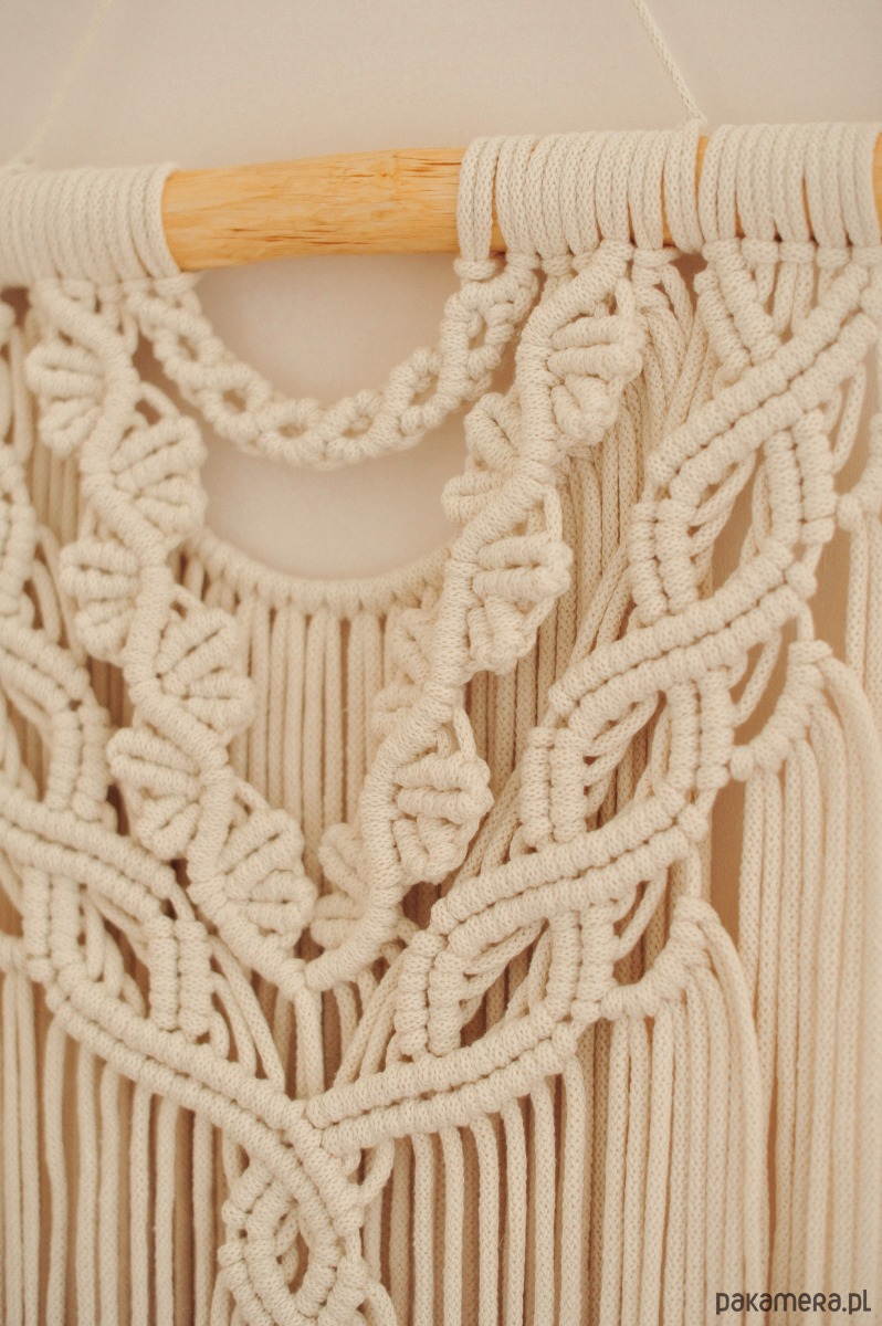 Zamówiona makrama może się nieznacznie różnić od tej na zdjęciu, ponieważ każda wykonywana jest ręcznie na zamówienie. Podczas wysyłki mogą na makramie wystąpić lekkie zagniecenia, natomiast po rozwieszeniu makramy i odczekaniu paru godzin sznurki wrócą do pierwotnego kształtu.