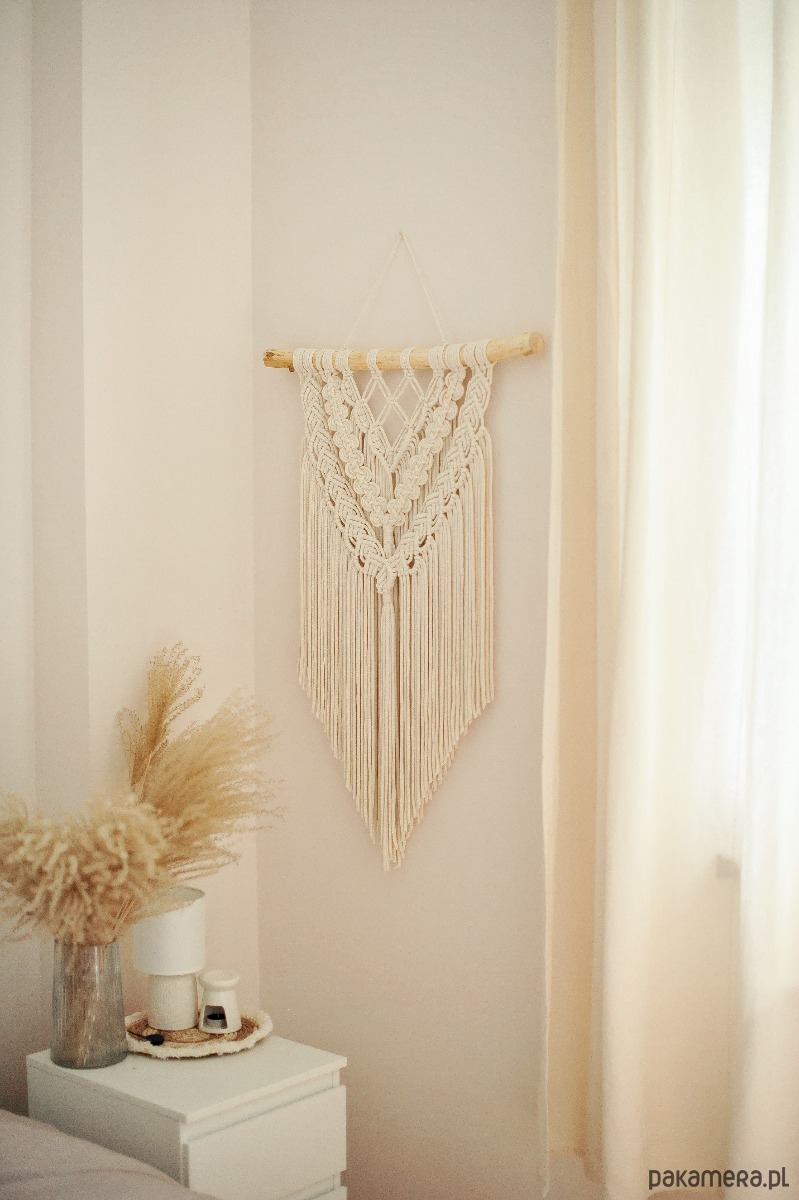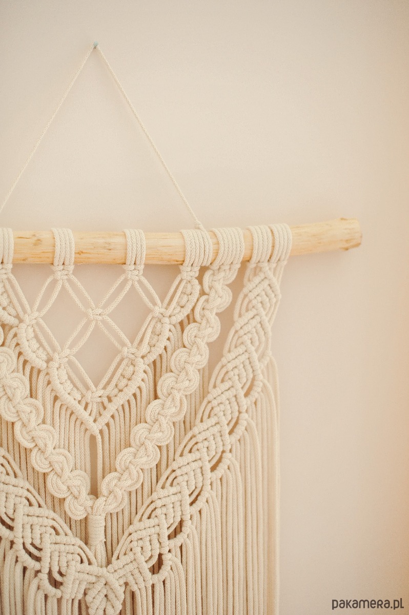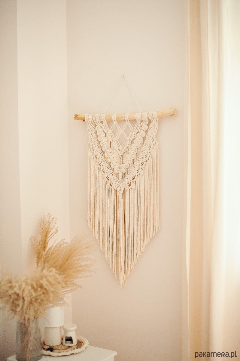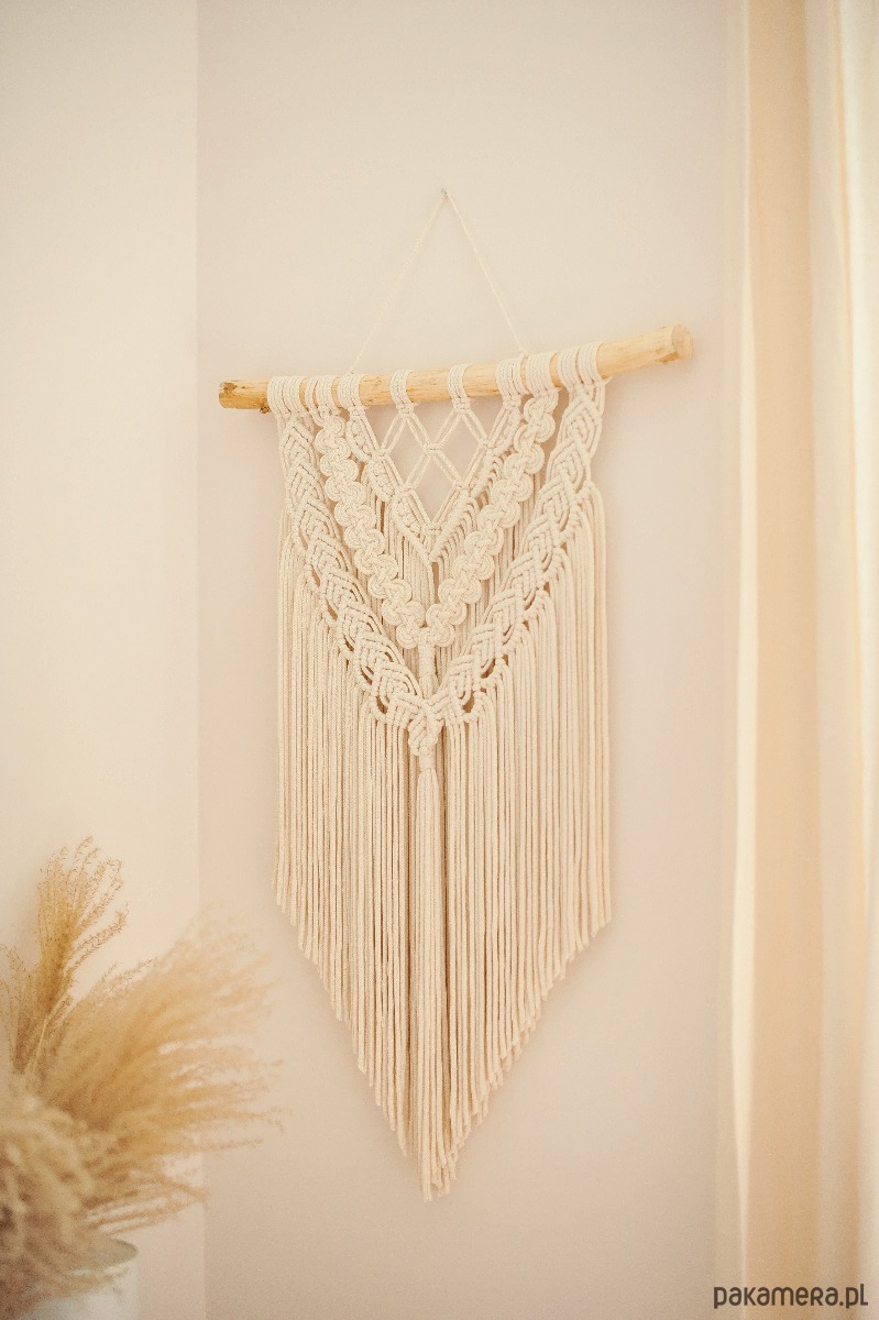Ręcznie wypleciona makrama z naturalnego bawełnianego sznurka 5 mm z najwyższą starannością i precyzją. W każdy projekt wkładam całe serduszko i zaangażowanie. Świetnie ociepli każde wnętrze.