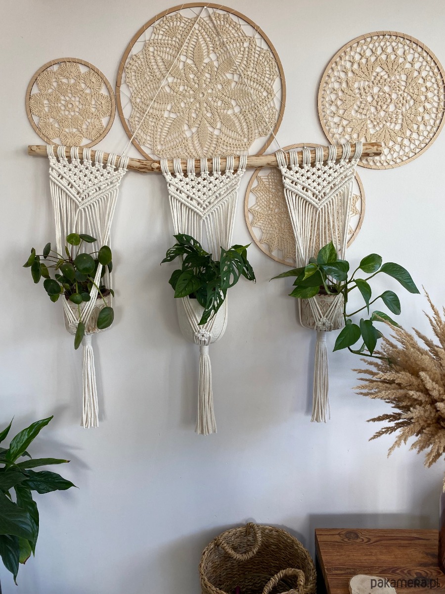 Makrama kwietnik na kilka doniczek