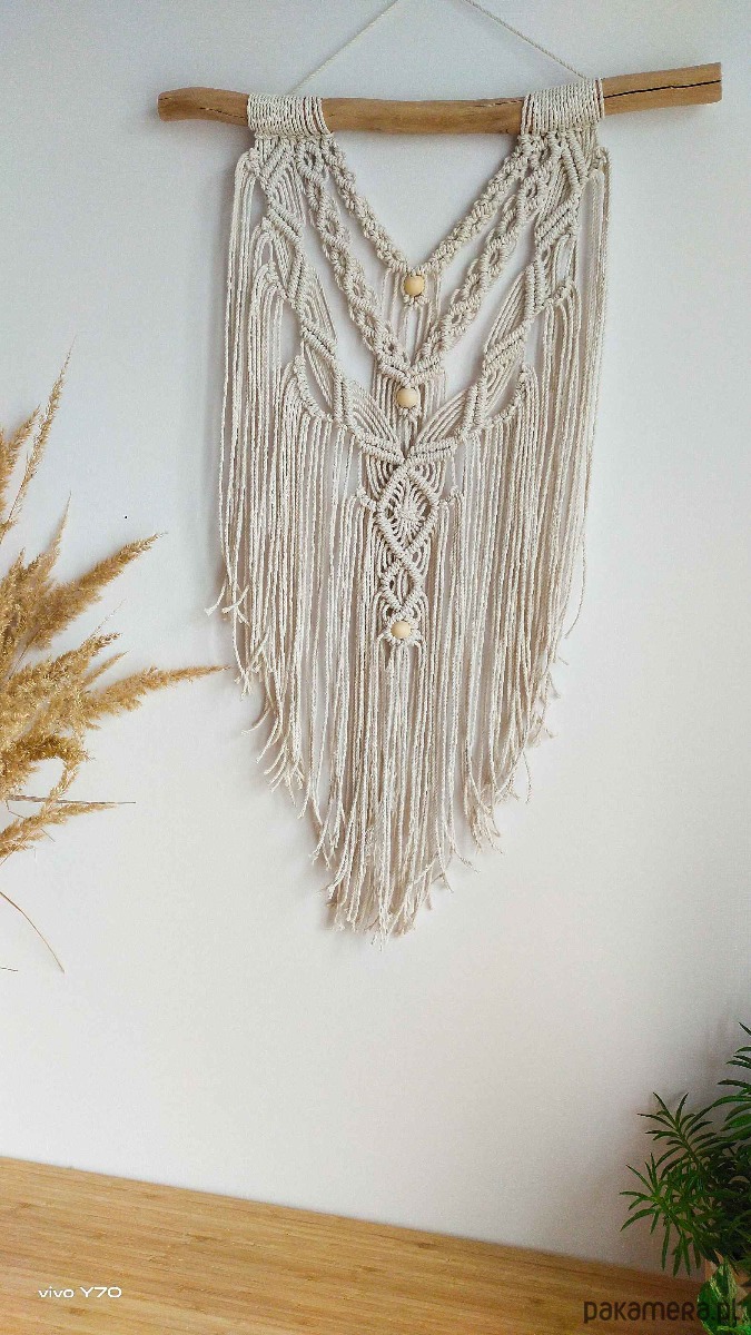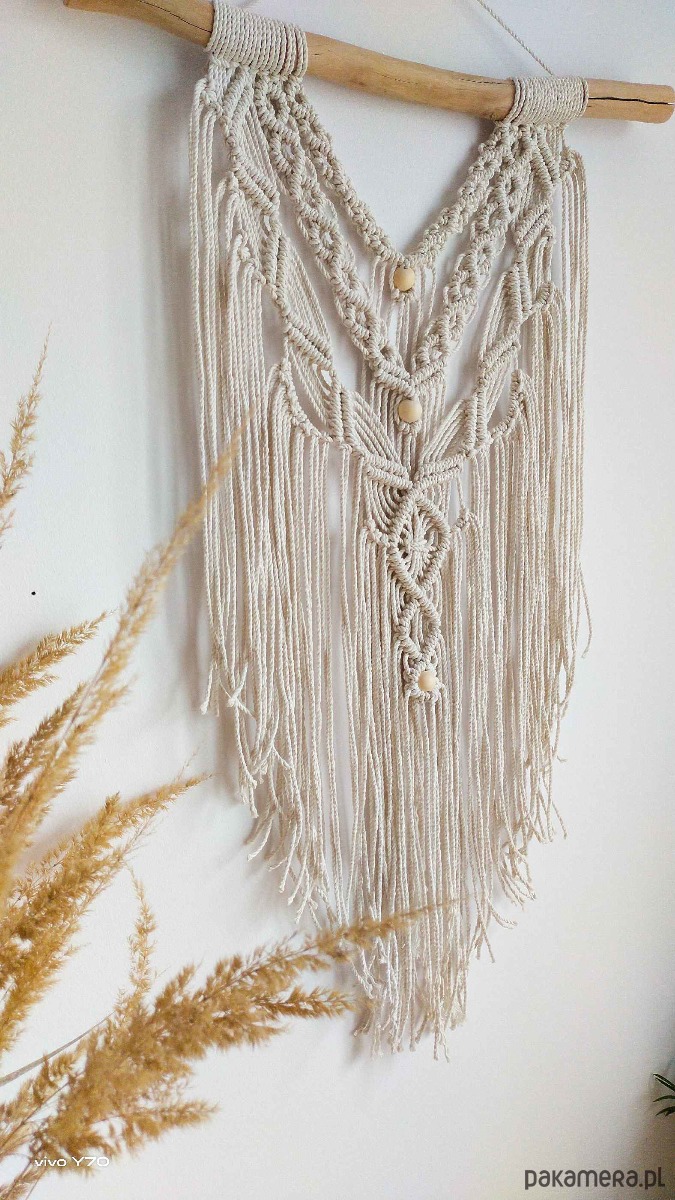 Makrama wisząca, na ścianę ze sznurka, wykonana ze sznurka skręcanego bawełnianego 3mm, najwyższej jakości. Kolor naturalny.