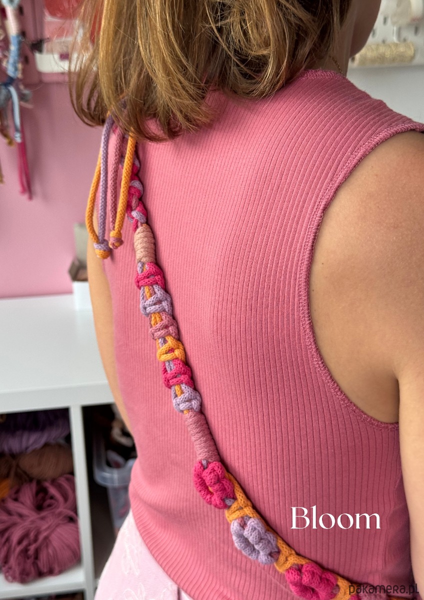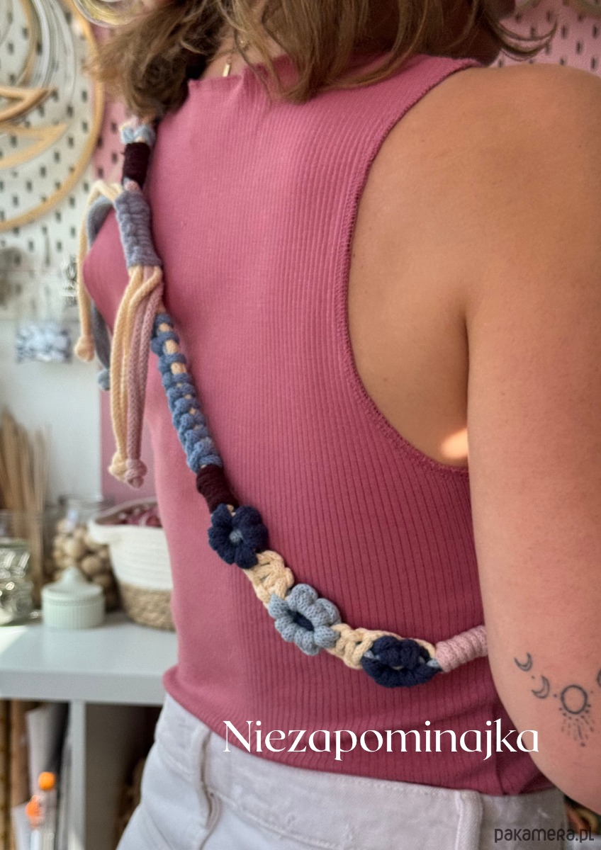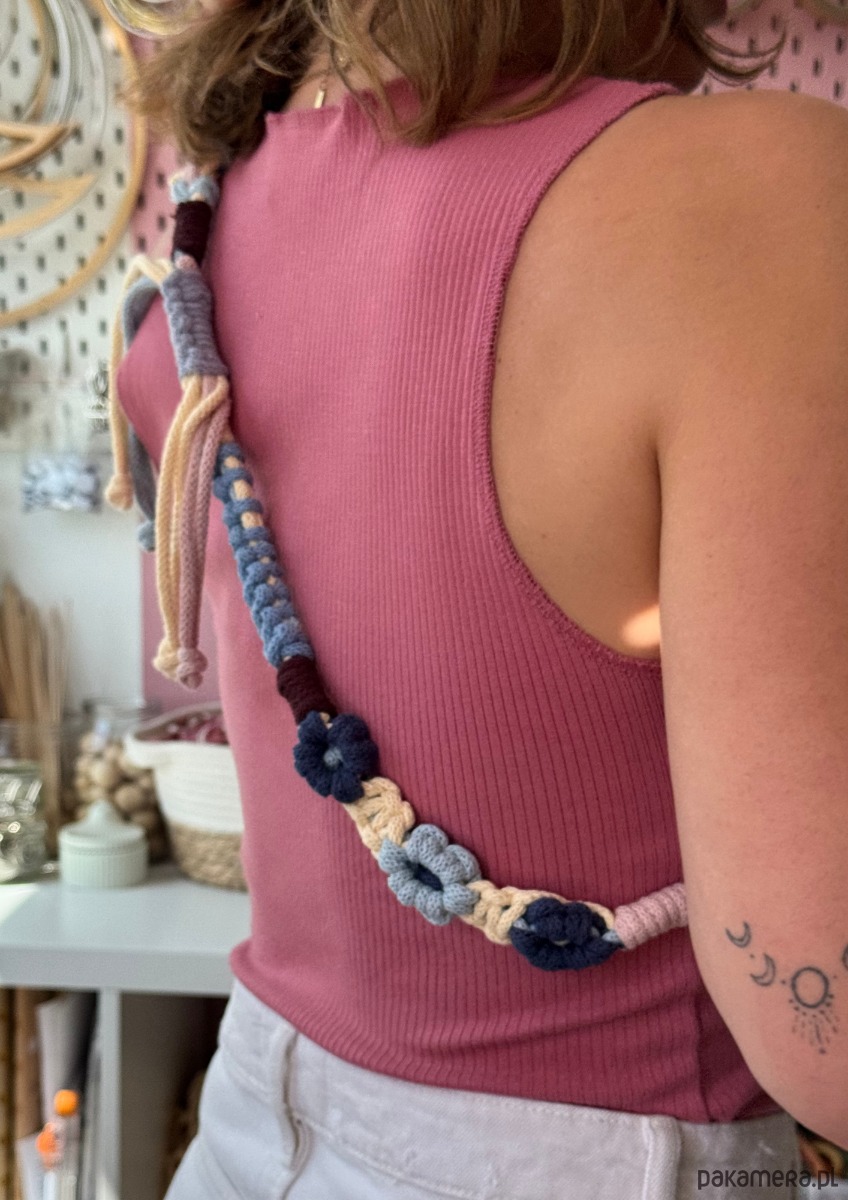 Zrobiona ręcznie, z miękkiego bawełnianego sznurka, w kwiatkowy wzór, który czule rozkwita na Twoim ramieniu.