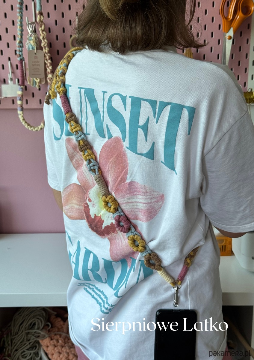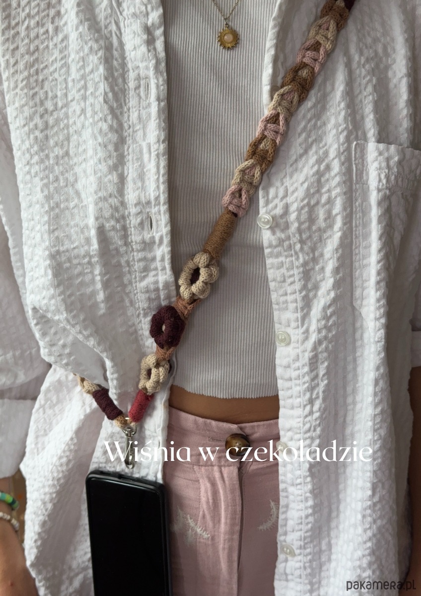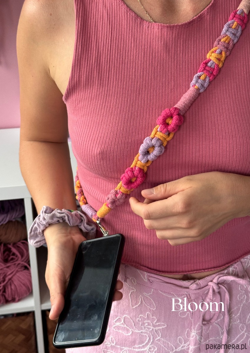 Makramowa smycz do telefonu w kwiatki