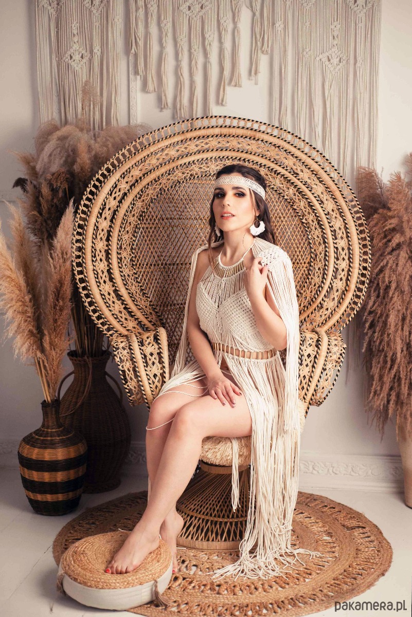 Zanurz się w magii tej wyjątkowej makramowej sukienki, która sprawi, że poczujesz się jak prawdziwa bogini! Wykonana z naturalnych, delikatnych sznurków, ta sukienka łączy w sobie elegancję i boho styl, idealnie wpisując się w letnie klimaty.