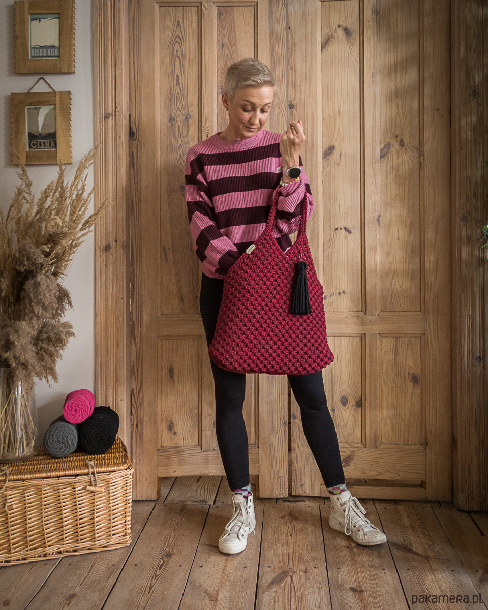 Każda torba ozdobiona jest makramowym chwostem, który można odpiąć.