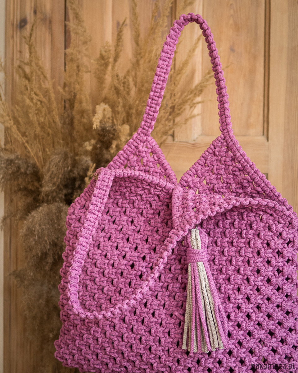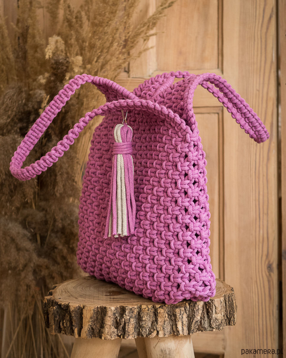 Dodaj wyjątkowego charakteru swoim stylizacjom z ręcznie wykonaną torbą w stylu boho. Ten unikalny model, został stworzony z miękkiego, bawełnianego sznurka w odcieniu orchida. Każdy egzemplarz jest wykonywany ręcznie techniką makramy, dzięki czemu masz pewność, że nikt nie będzie miał identycznej torby jak Ty.