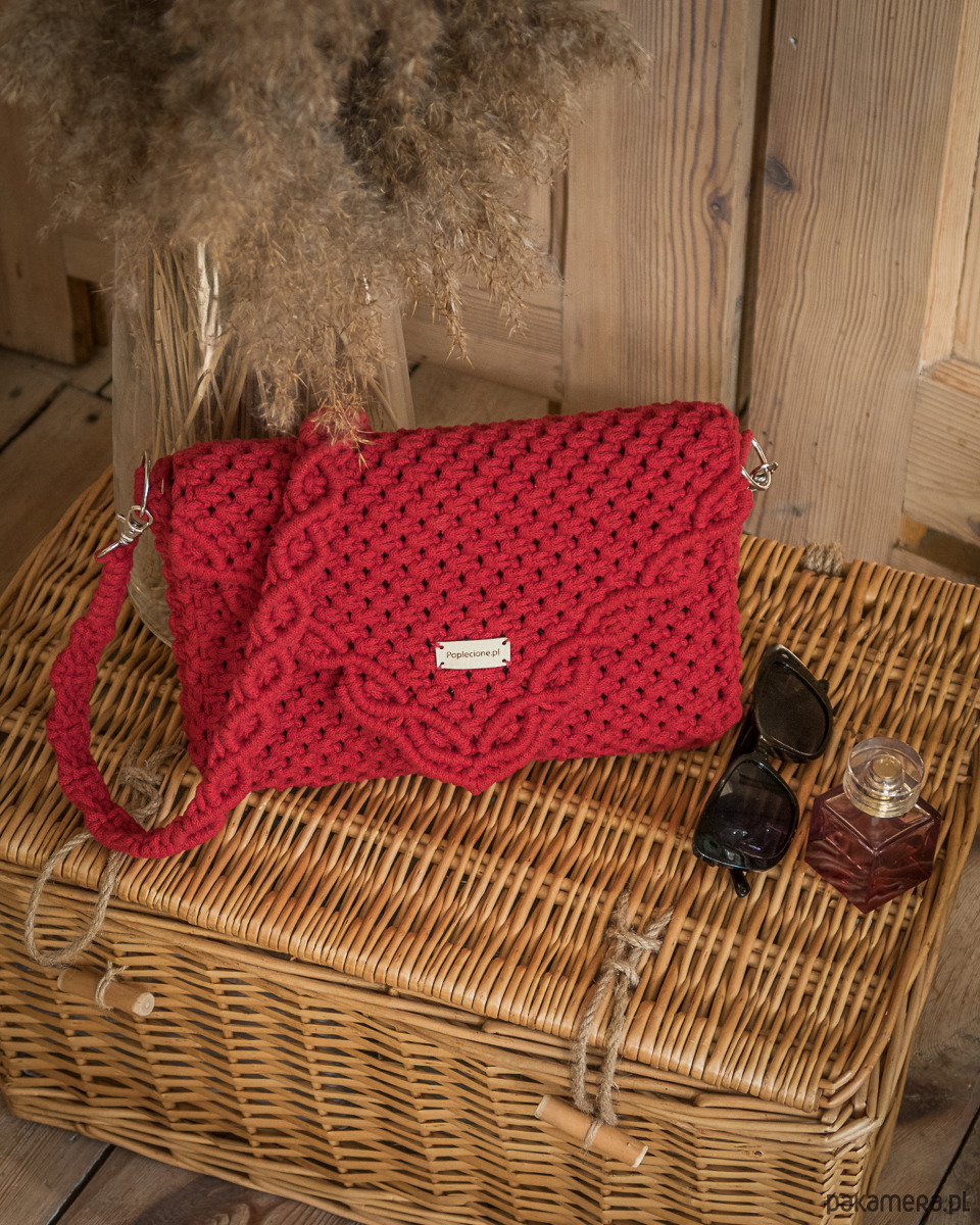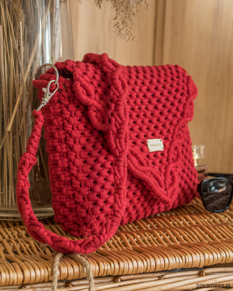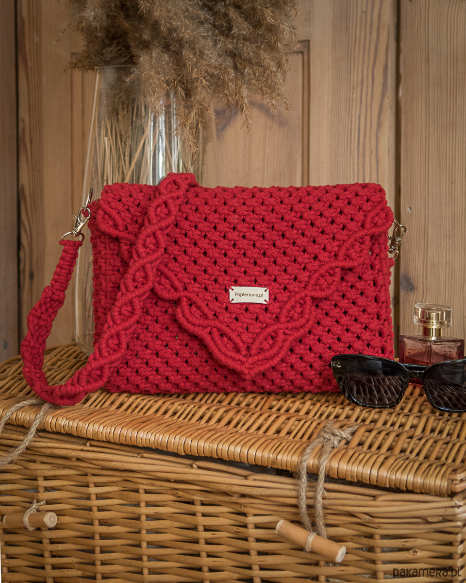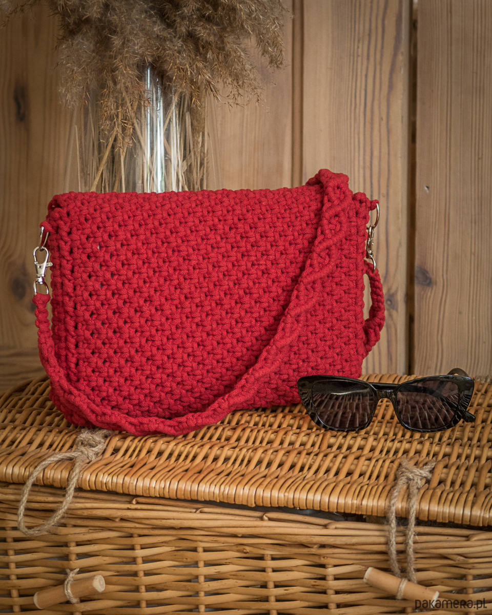 Makramowa torba listonoszka wykonana z bawełnianego sznurka w kolorze czarnym