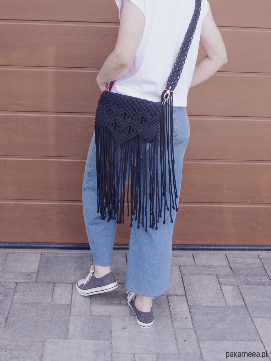 Torebka z makramy.. Kolor czarny. . Super na imprezę i na co dzień .. Sznurek bawełniany.. Nie ma wewnątrz poszewki ale jest gęsto pleciona i nic nie wypadnie (chyba że malutki kolczyk)))