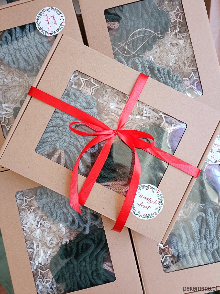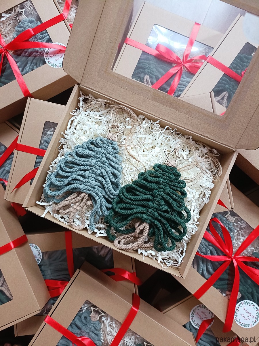 Makramowe choinki w ozdobnych pudełkach