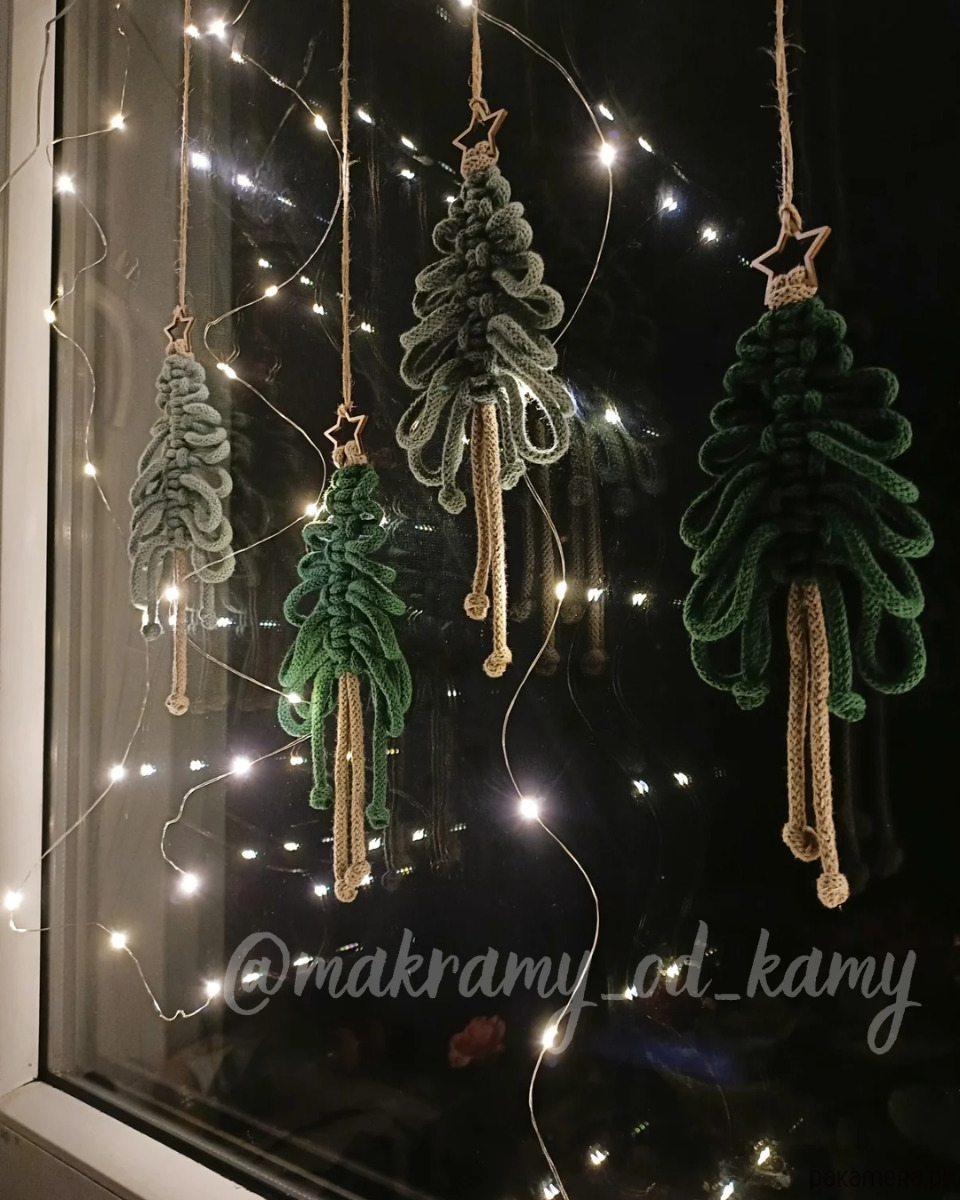 Wprowadź do swojego wnętrza świąteczny klimat z zestawem czterech ręcznie robionych choinek z makramy. 🎄