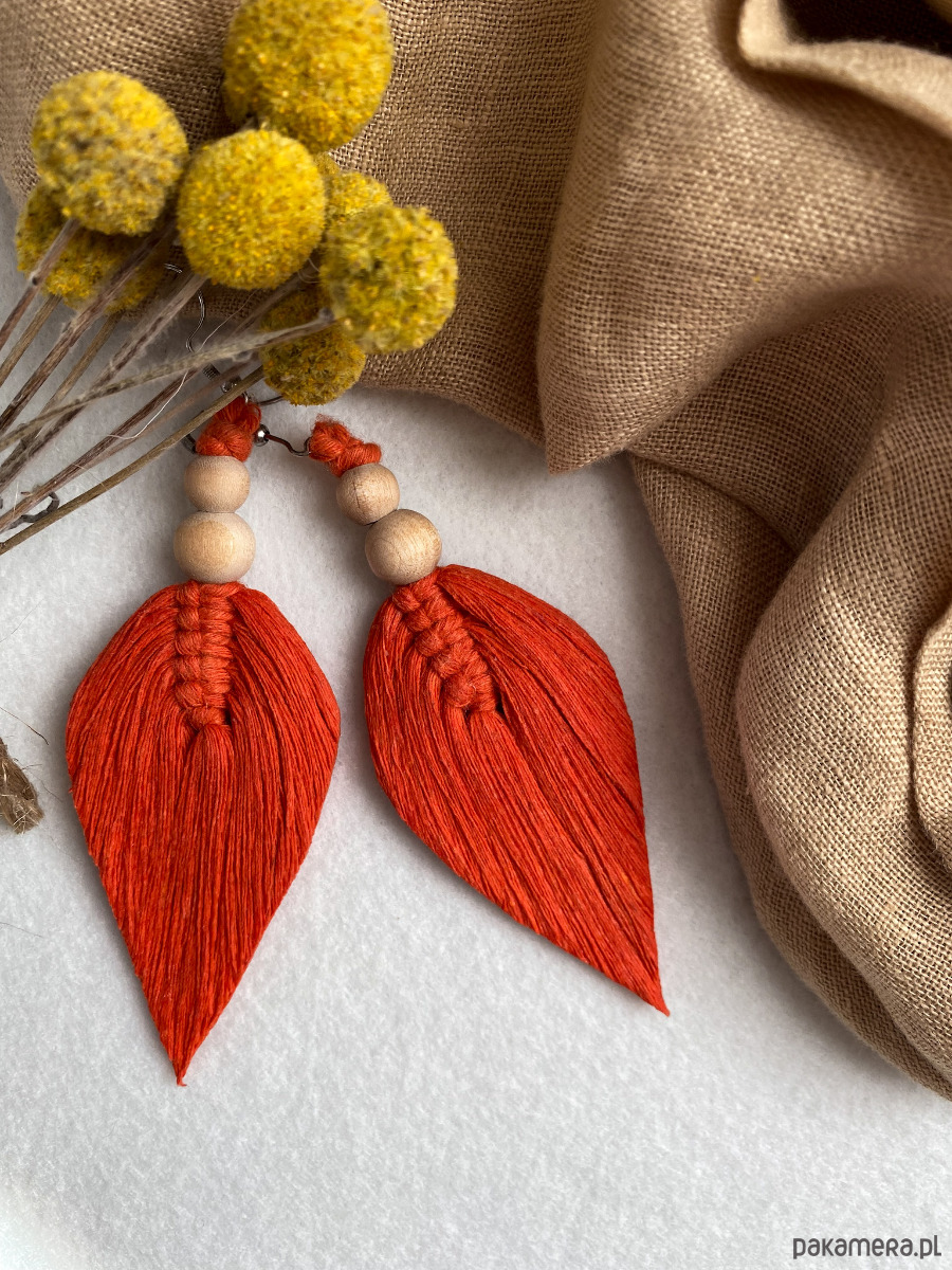 Kolczyki wykonane techniką makrama w kolorze soczystej pomarańczy.