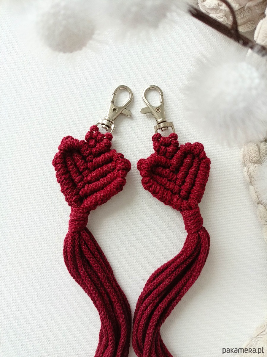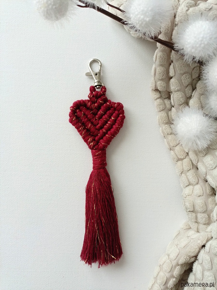Ręcznie pleciony makramowy breloczek w kształcie serca. Idealny gift na walentynki:)