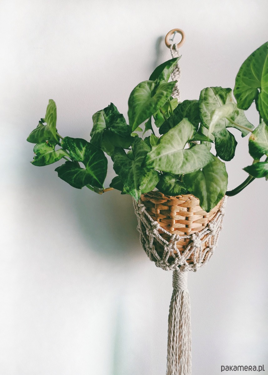 Kwietnik został ręcznie wykonany z użyciem sznurka bawełnianego dla doniczki o wymiarach 13-20 cm.