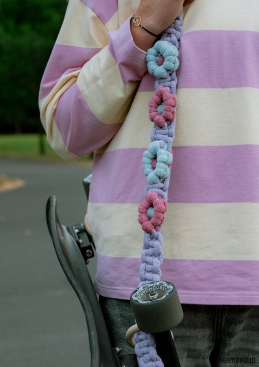 Makramowy pasek w kwiatki na deskorolkę / matę