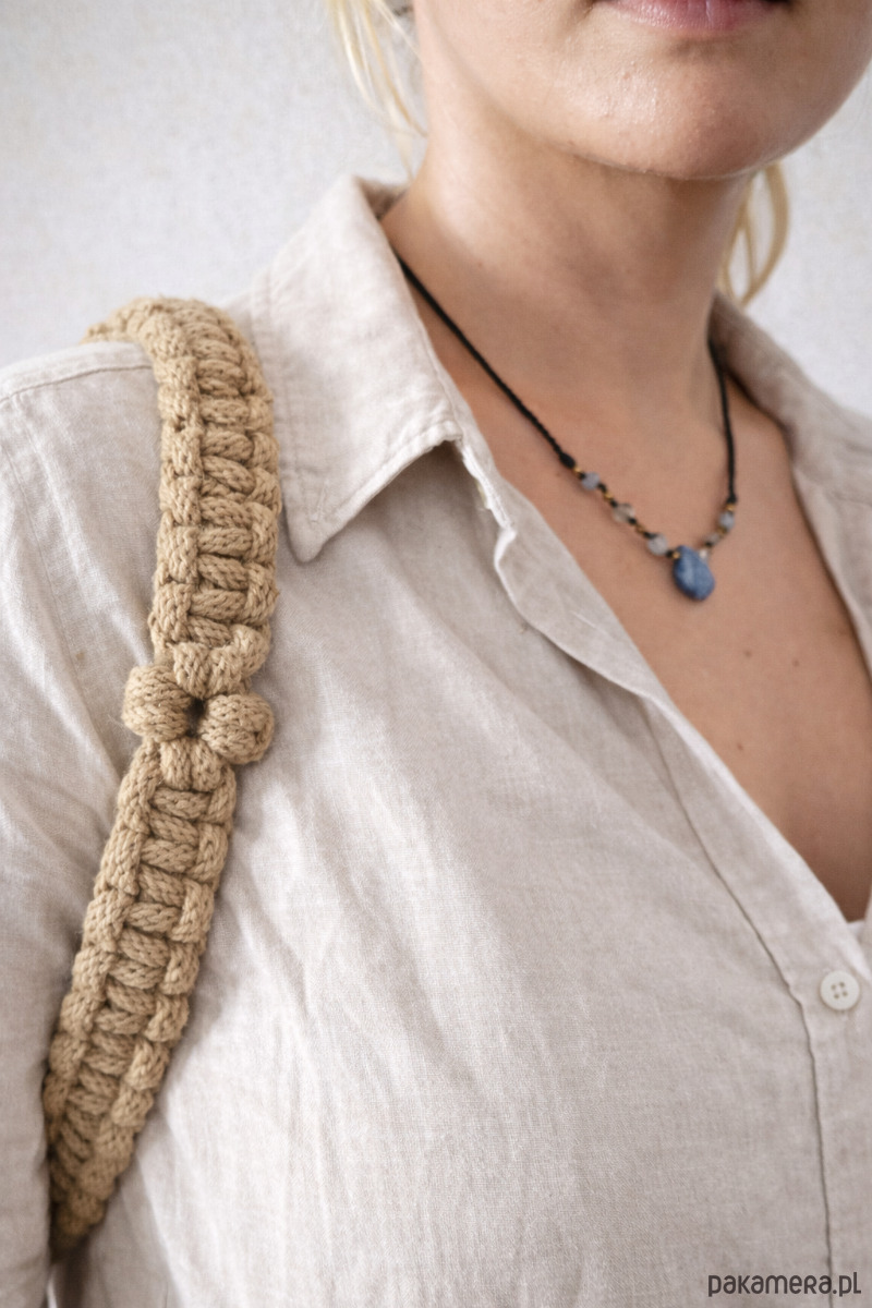 Miękki, pojemny i przyciągający uwagę – ten ręcznie robiony plecak z bawełnianego sznurka to połączenie stylu i funkcjonalności. Pleciony w strukturalny, wyrazisty wzór, zachowuje swój kształt i doskonale sprawdzi się zarówno na co dzień, jak i w podróży.