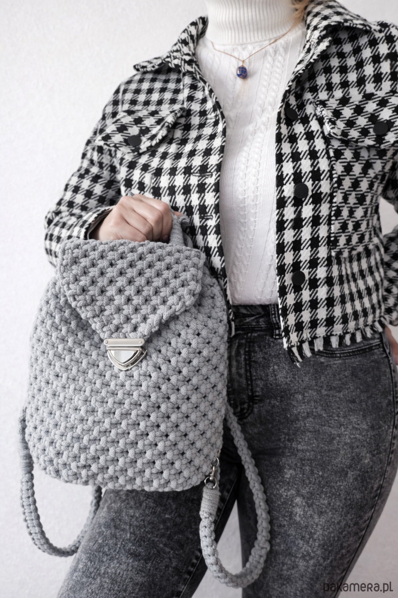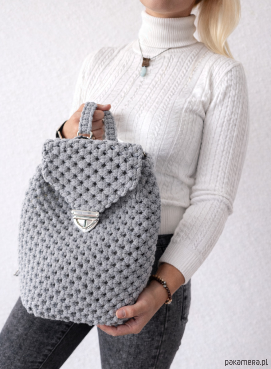 Miękki, pojemny i przyciągający uwagę – ten ręcznie robiony plecak z bawełnianego sznurka to połączenie stylu i funkcjonalności. Pleciony w strukturalny, wyrazisty wzór, zachowuje swój kształt i doskonale sprawdzi się zarówno na co dzień, jak i w podróży.