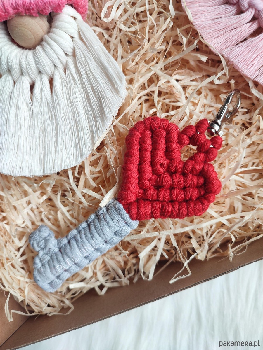 Makramowy brelok w kształcie klucza z serduszkiem – symboliczny motyw „klucza do serca”