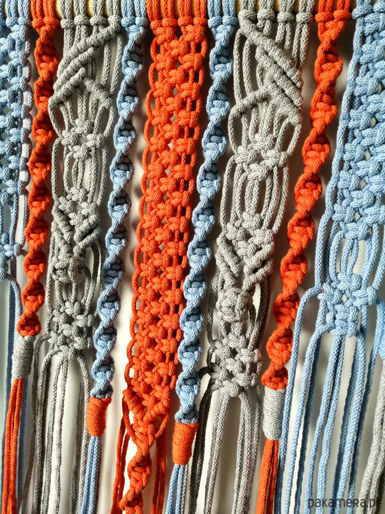 Sznurek bawełniany, kolor – pomarańczowy, niebieski, szary (kolor może się różnić od tego w rzeczywistości ze względu na różne ustawienia monitora).