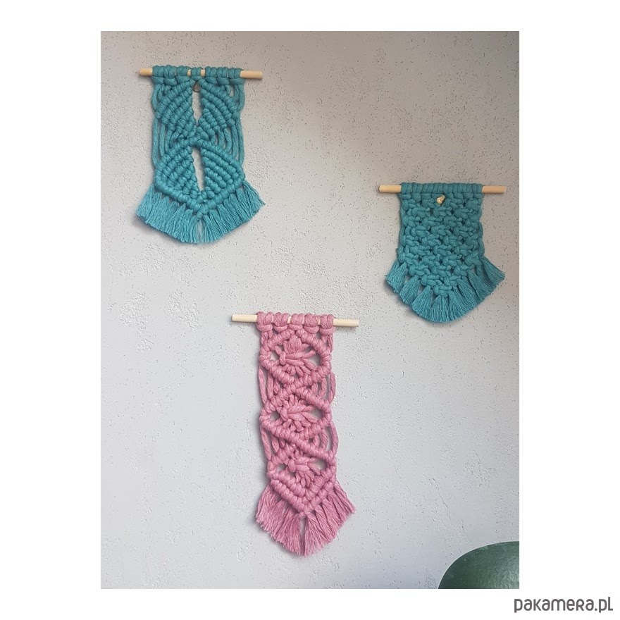 Zestaw 3 minimakramek ręcznie zaplecionych z bawełnianego (100%) sznurka na bambusowym kijku.