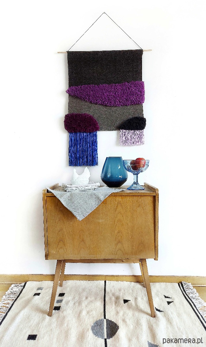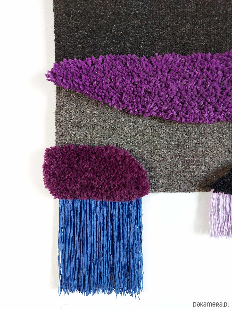 kilim pochodzący z serii inspirowanej naturą. O trójwymiarowej strukturze, puchatej, bardzo miękki w dotyku. Wyprodukowany w małym warsztacie tkackim w Warszawie. Wykonany ręcznie na ramie tkackiej w technice kilimowej. Tkany z włóczki pochodzącej z recyklingu i owczej wełny.