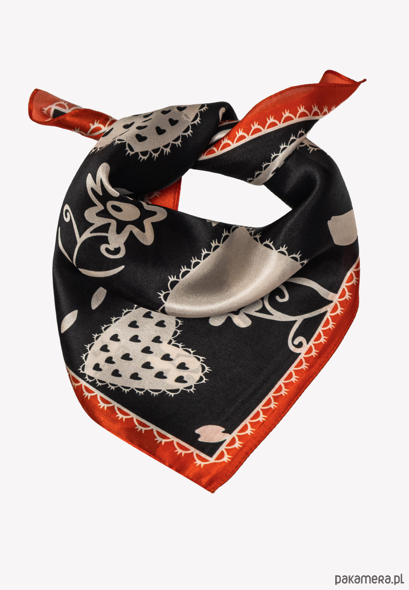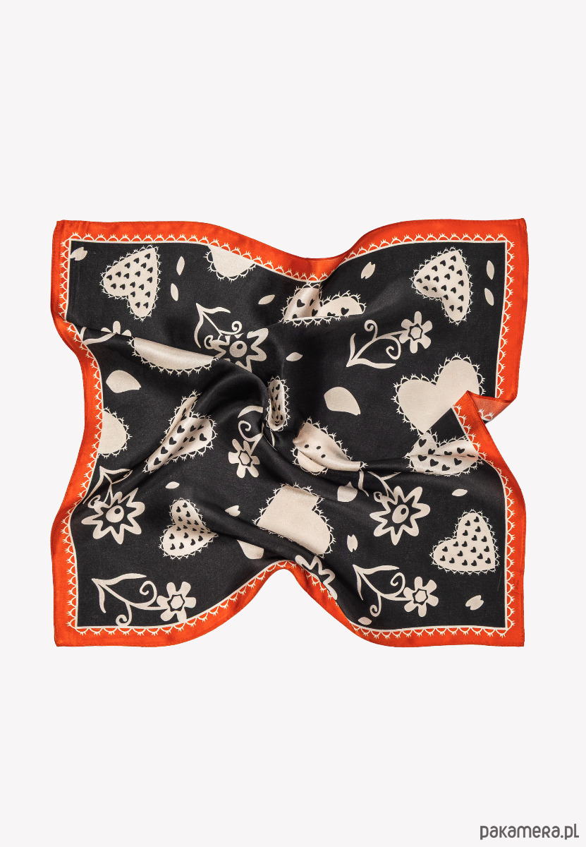 Mała apaszka damska chustka czarna w serca 53x53 cm