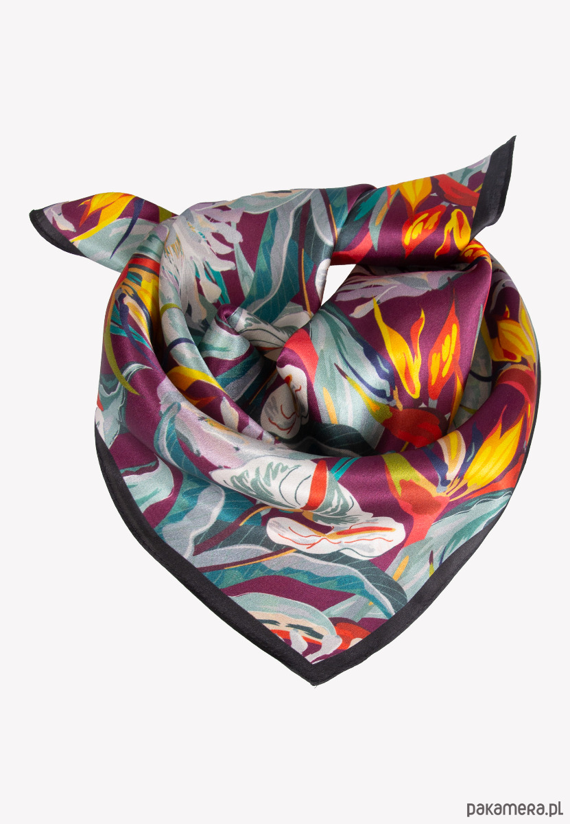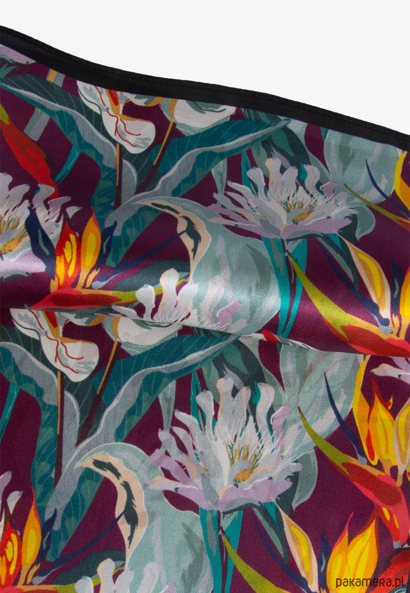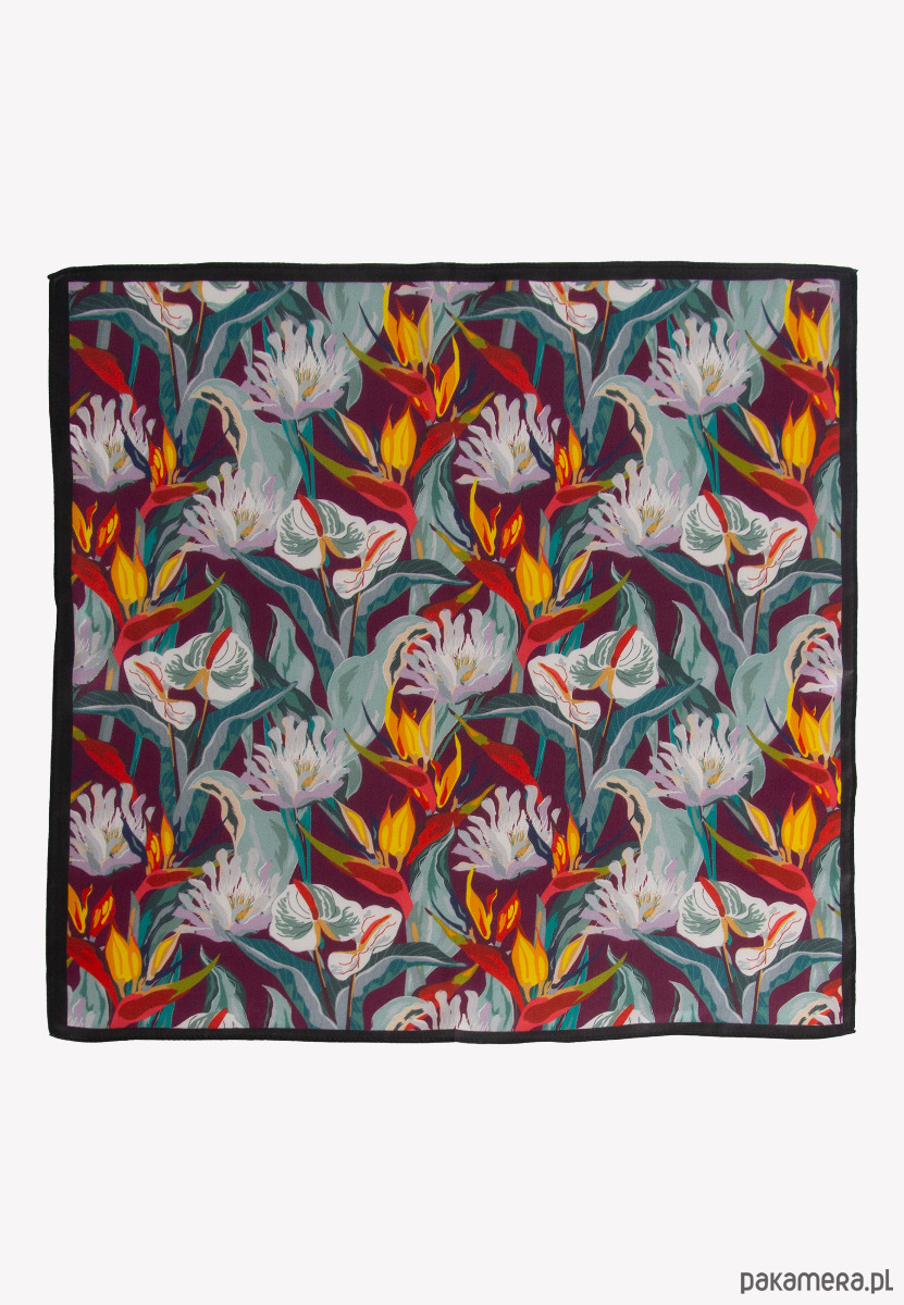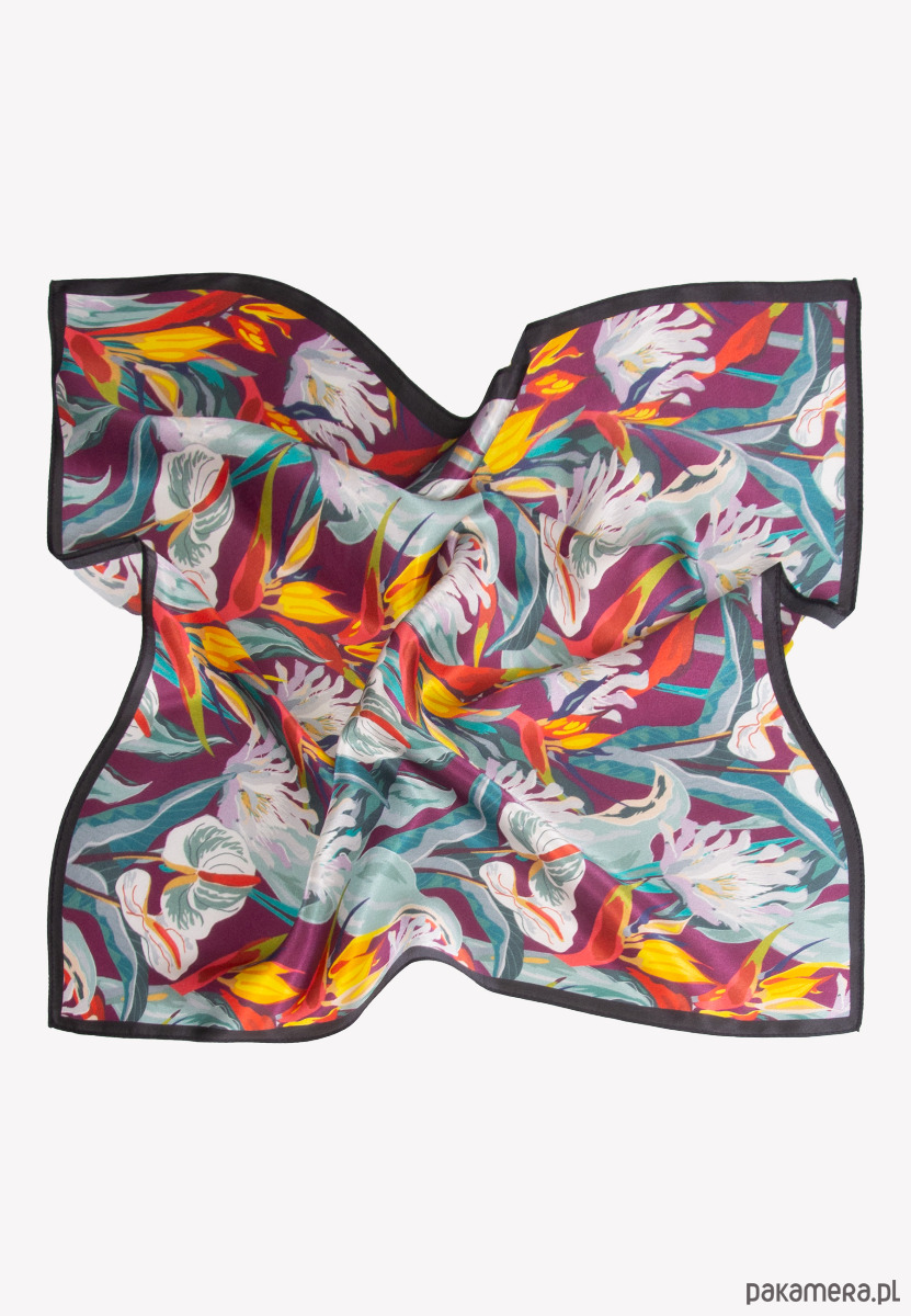 Mała apaszka damska jedwabna w kwiaty 53cm x53 cm