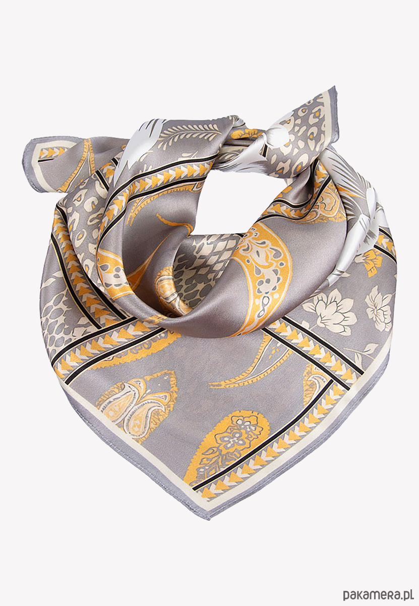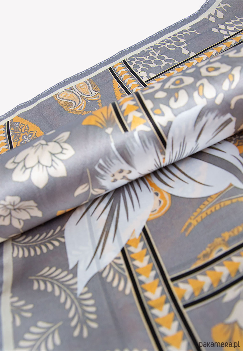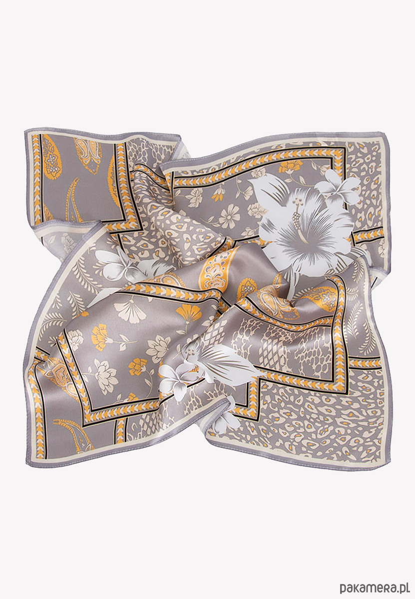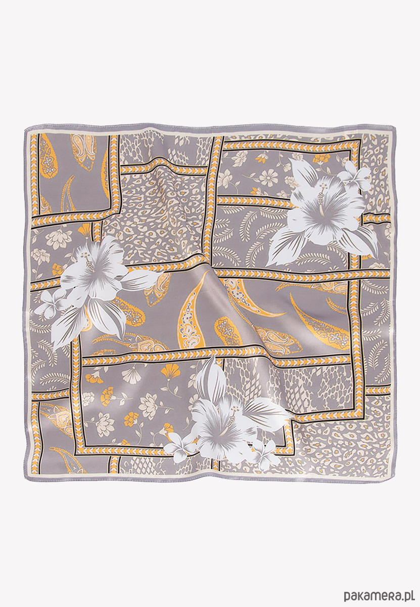 Mała apaszka jedwabna szara w kwiaty 53 cm x 53 cm