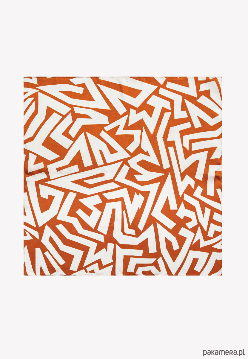 Jedwabna apaszka 53×53 cm wykonana w 100% z naturalnego jedwabiu zachwyca nowoczesnym, geometrycznym wzorem . Wyrazisty print nadaje stylizacji charakteru i doskonale komponuje się z minimalistycznymi zestawami. Lekka i miękka tkanina pięknie układa się na szyi oraz przy torebce. To elegancka apaszka jedwabna idealna do codziennych i biznesowych stylizacji.