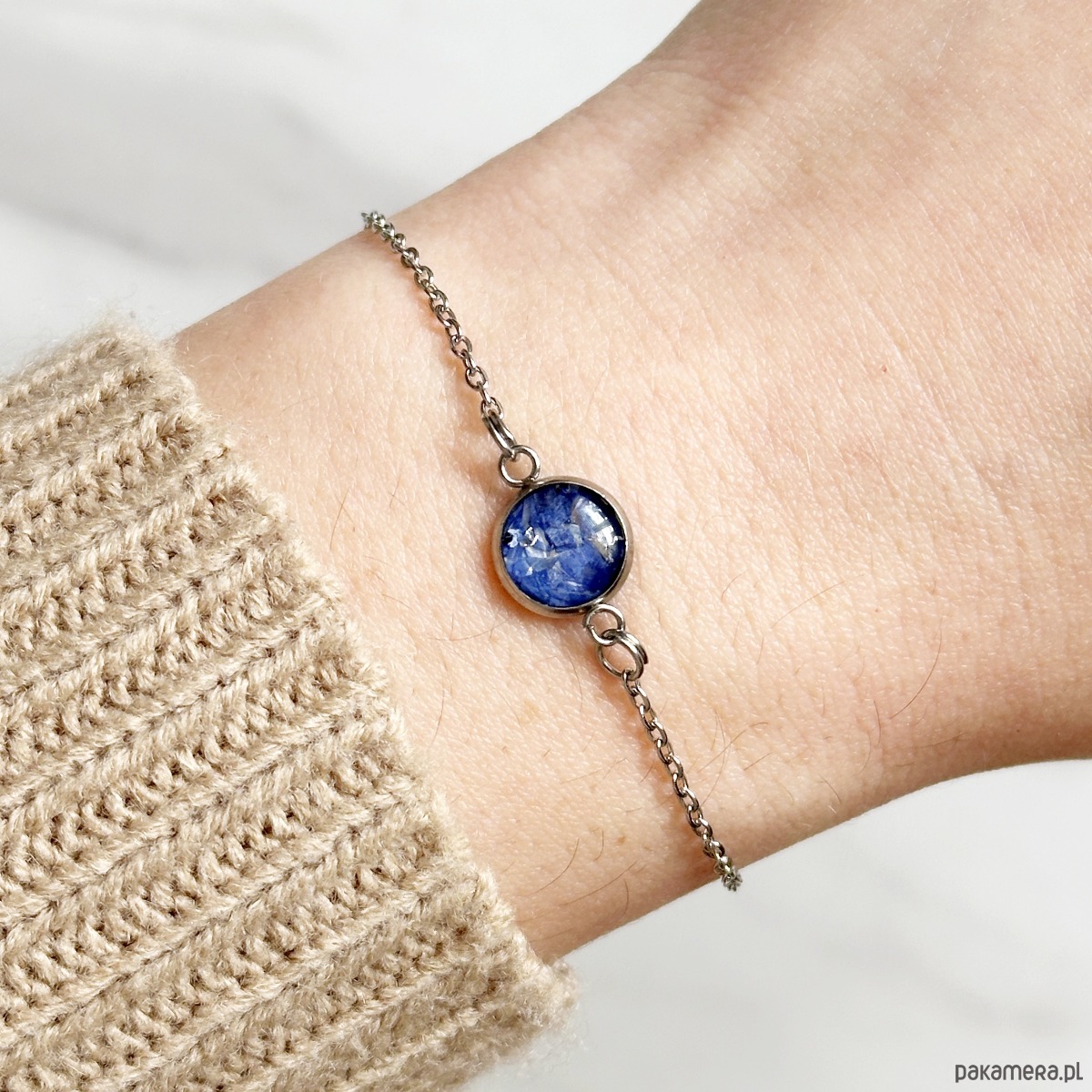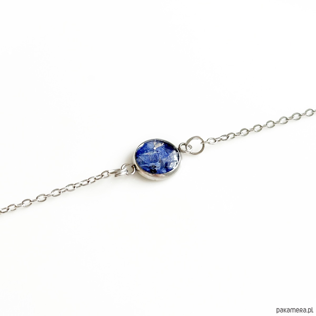 Delikatna bransoletka z kwiatami w żywicy o wymiarach 0,8cm.
