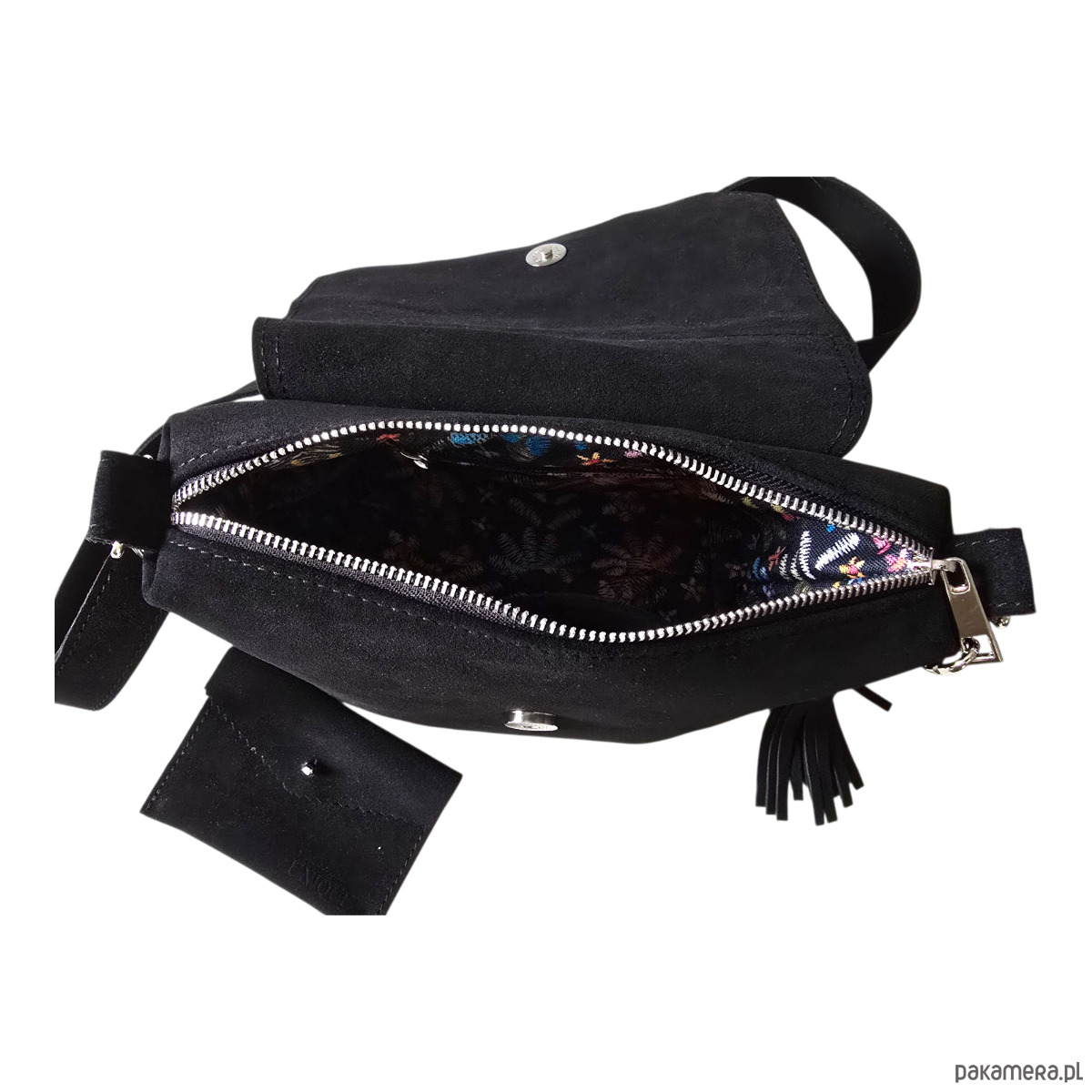 Okucia i suwak metalowe w kolorze srebrnym-nikiel.