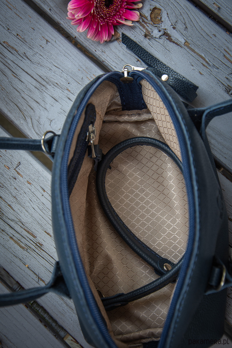 Dodatkowo wewnątrz znajduje się wodoodporna podszewka oraz praktyczna kieszonka na zamek, która pozwala bezpiecznie przechować drobiazgi. Pasek crossbody oraz wygodne uchwyty sprawiają, że torba jest uniwersalna i funkcjonalna