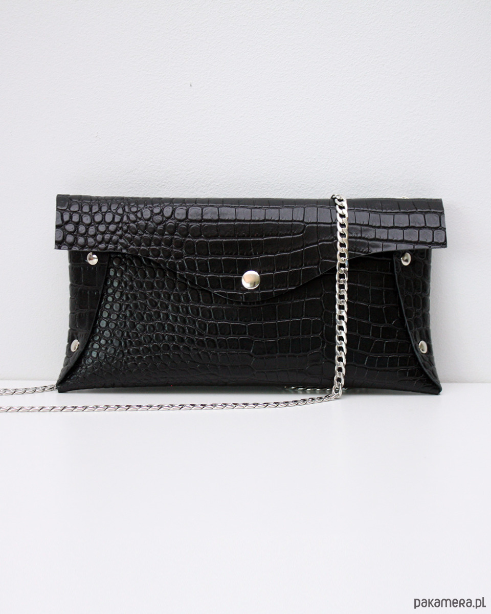 Mała, elegancka kopertówka skórzana do noszenia na lekkim łańcuszku. Torebka dostępna jest w dwóch wariantach: z okuciami i łańcuszkiem w kolorze srebrnym. W kopertówce skórzanej zmieścisz smartfona, mały portfel, pomadkę oraz klucze. Idealnie nada się na wesele, komunię czy wieczorne wyjście z przyjaciółmi.