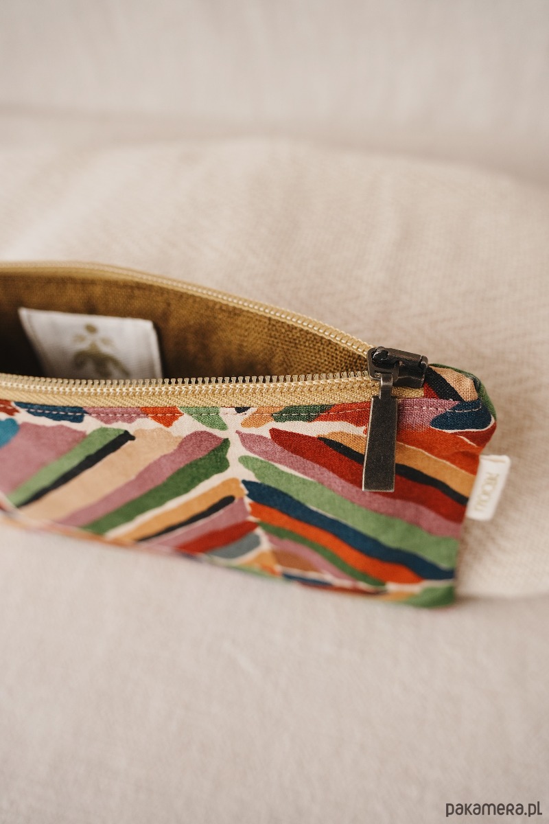 Wybierając tą kosmetyczkę wspierasz zrównoważoną modę w duchu slow oraz zapraszasz do swojego życia wyjątkowy, jedyny w swoim rodzaju element.