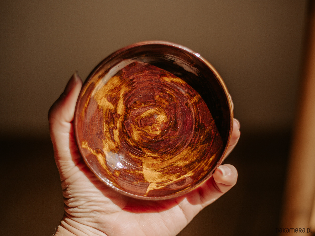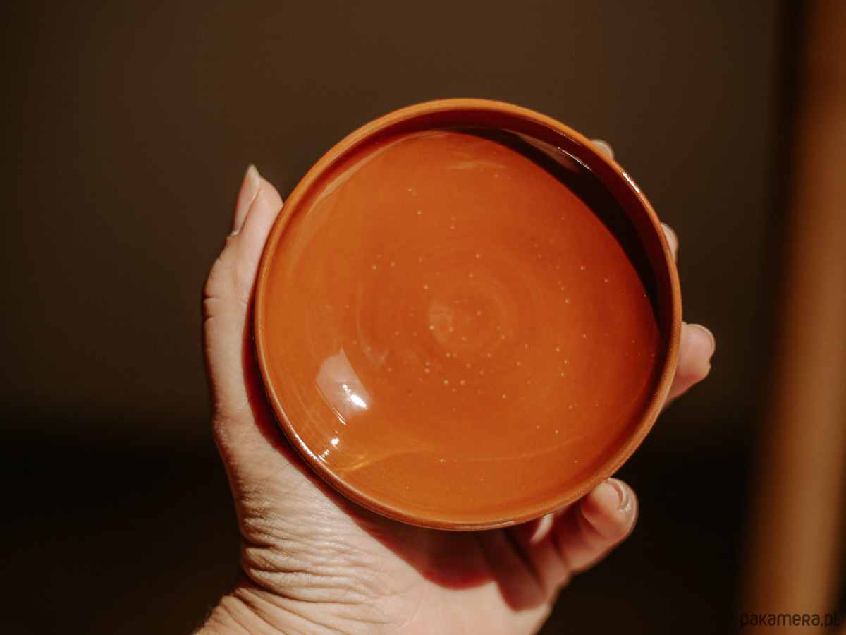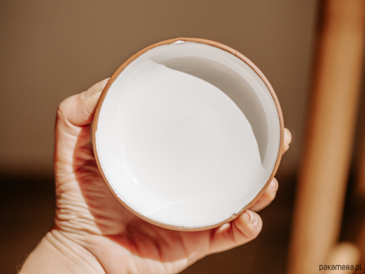 Miseczki są dostępne w kilku kolorach z odsłoniętą gliną od spodu: