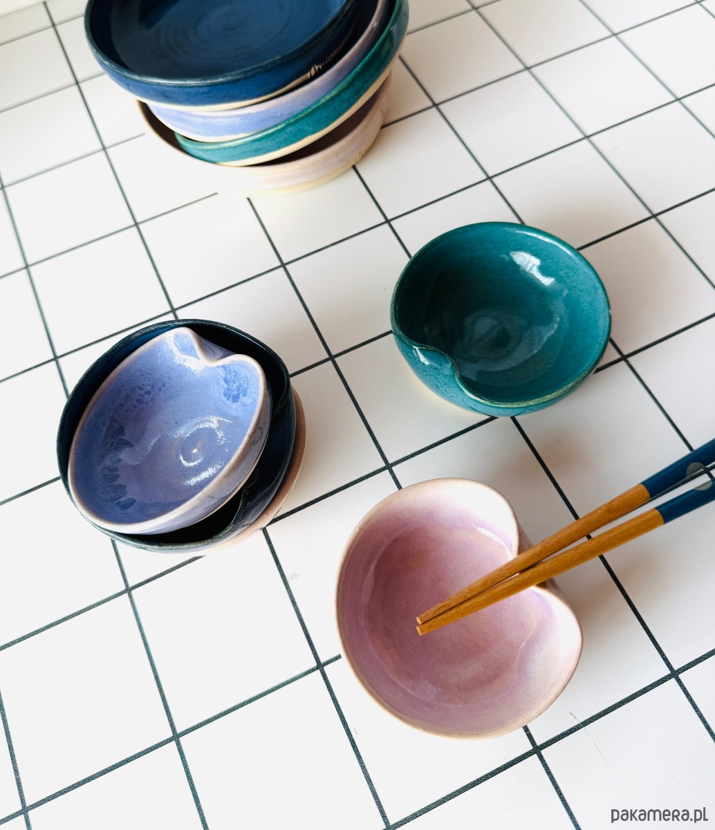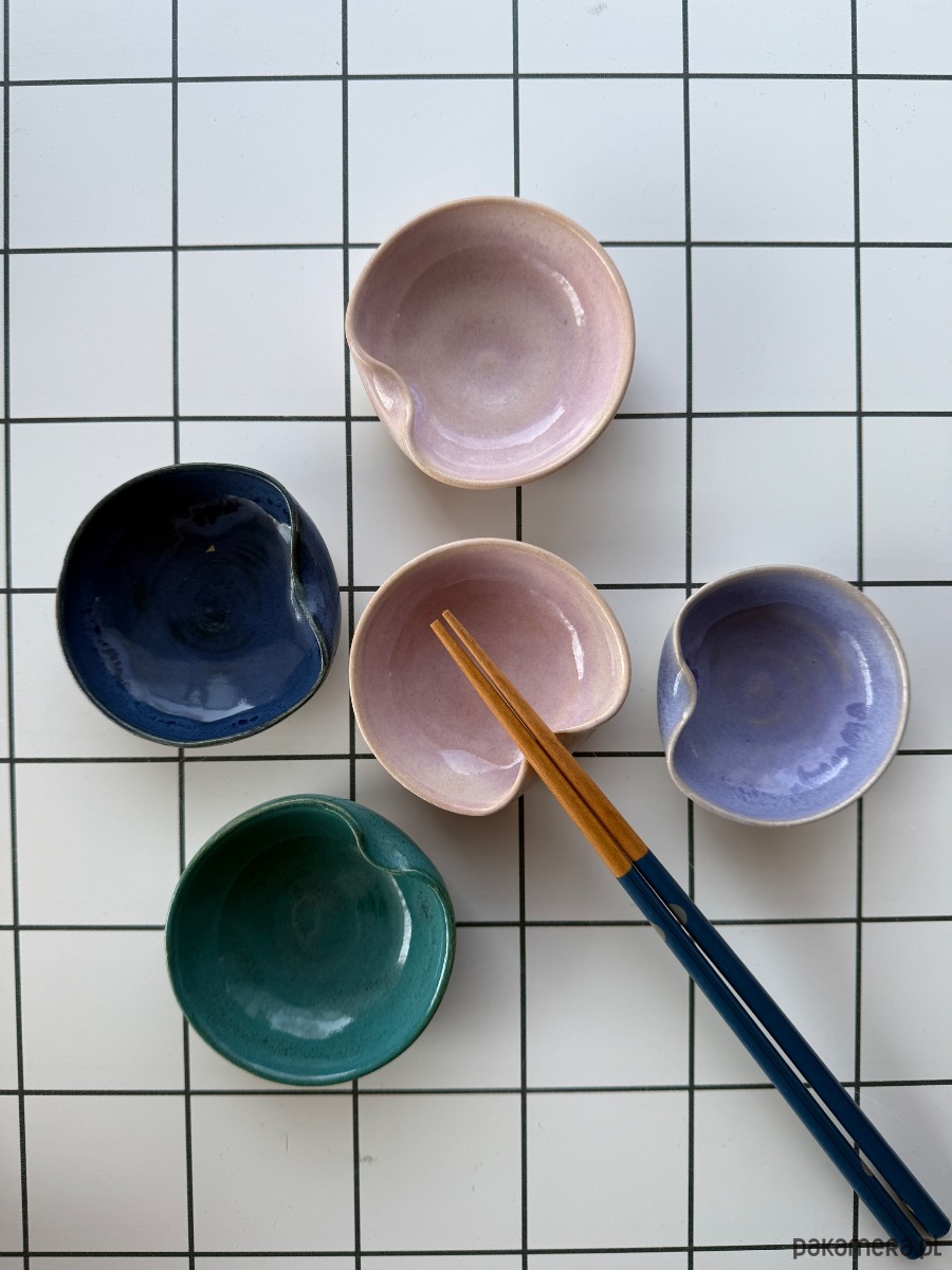Ręcznie wykonana malutka miseczka, która ma wiele zastosowań - posiada miejsce do odkładania pałeczek, może służyć jako miseczka na sos do sushi, może być podstawką na biżuterię lub kadzidełko czy pało santo. Idealnie komponuje się z innymi rzeczami z mojego sklepiku :)