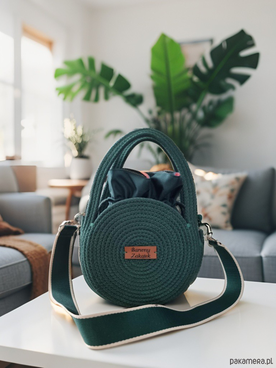 Mała, ale z charakterem! Oto okrągła torebka w kolorze butelkowej zieleni, która udowadnia, że urocze też może być praktyczne. Do ręki, na przedramię albo na ramię – wybór należy do Ciebie. Krótkie rączki nadają jej szyku. Odpinany parciany pasek z karabińczykami pozwala na szybkie zmiany – możesz podpiąć ulubiony pasek i nadać jej zupełnie nowy vibe.
